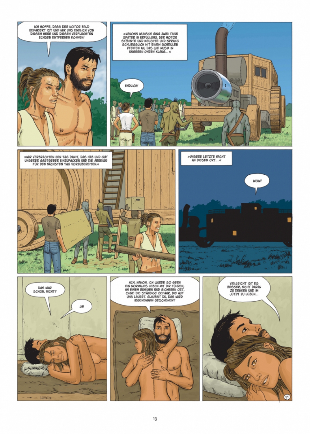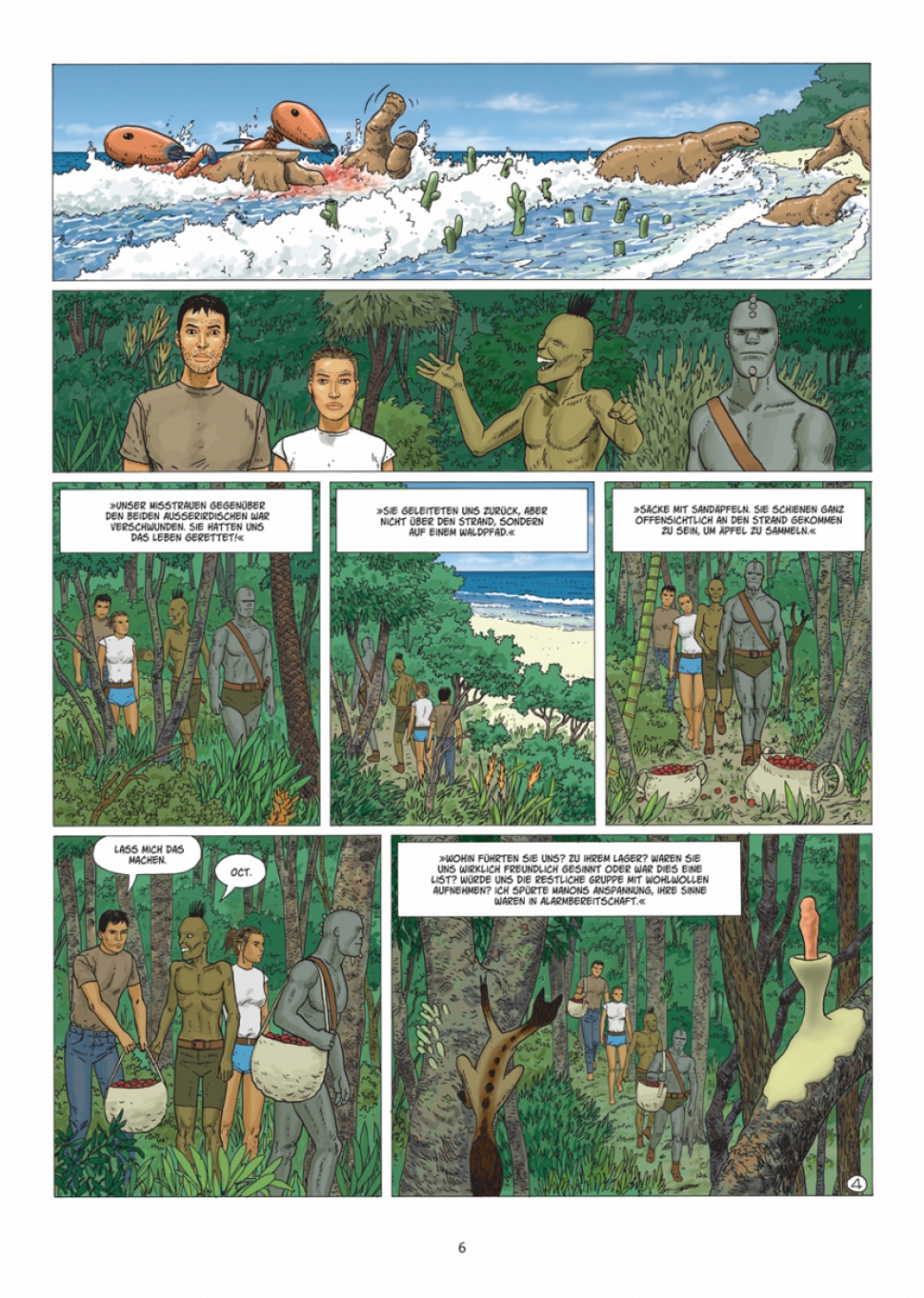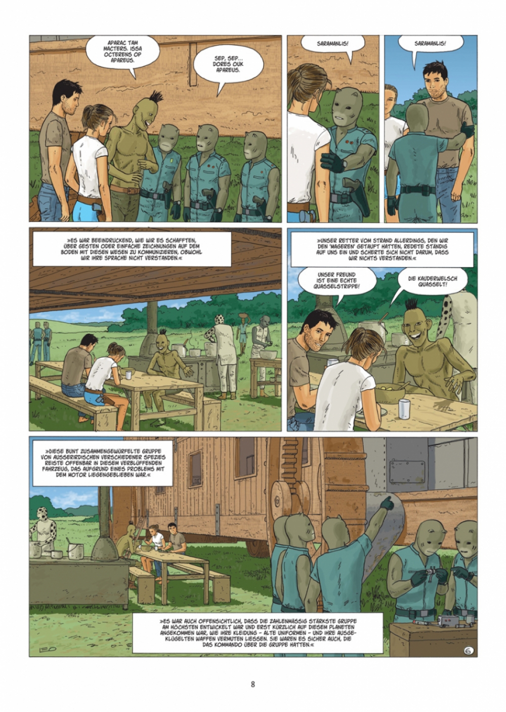 »Überlebende« ist nun keine direkte Fortführung dieses Erzählstrangs, sondern ein zunächst einmal unabhängiges Seitenstück zu Leos Erfolgssaga. Das hat den Reiz, dass er nun praktisch noch einmal bei Null anfängt – ohne aber seine gewohnten Stärken zu vernachlässigen: das Ausloten komplexer menschlicher Beziehungen und natürlich die fantasievolle Schilderung einer fremdartigen Flora und Fauna.