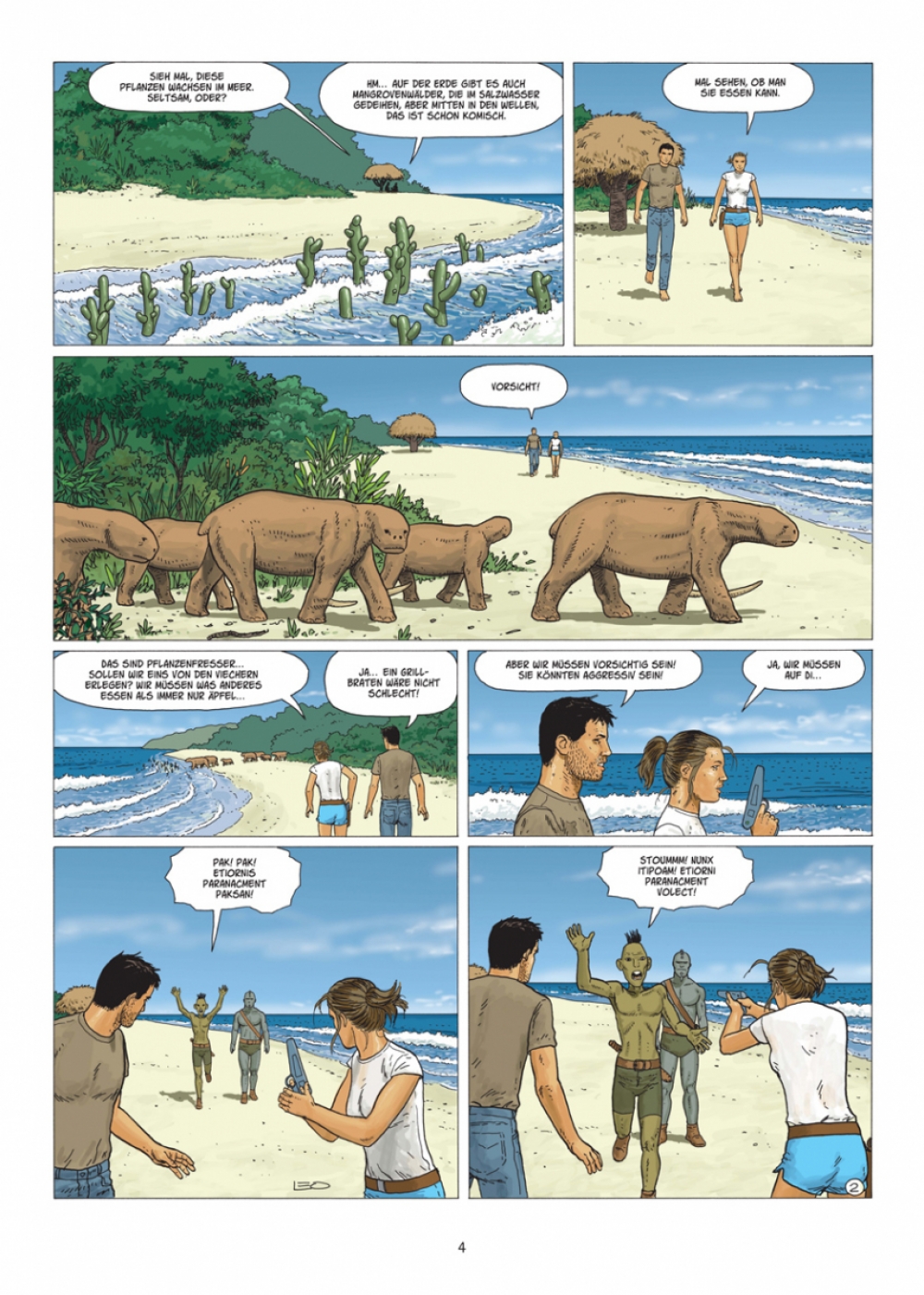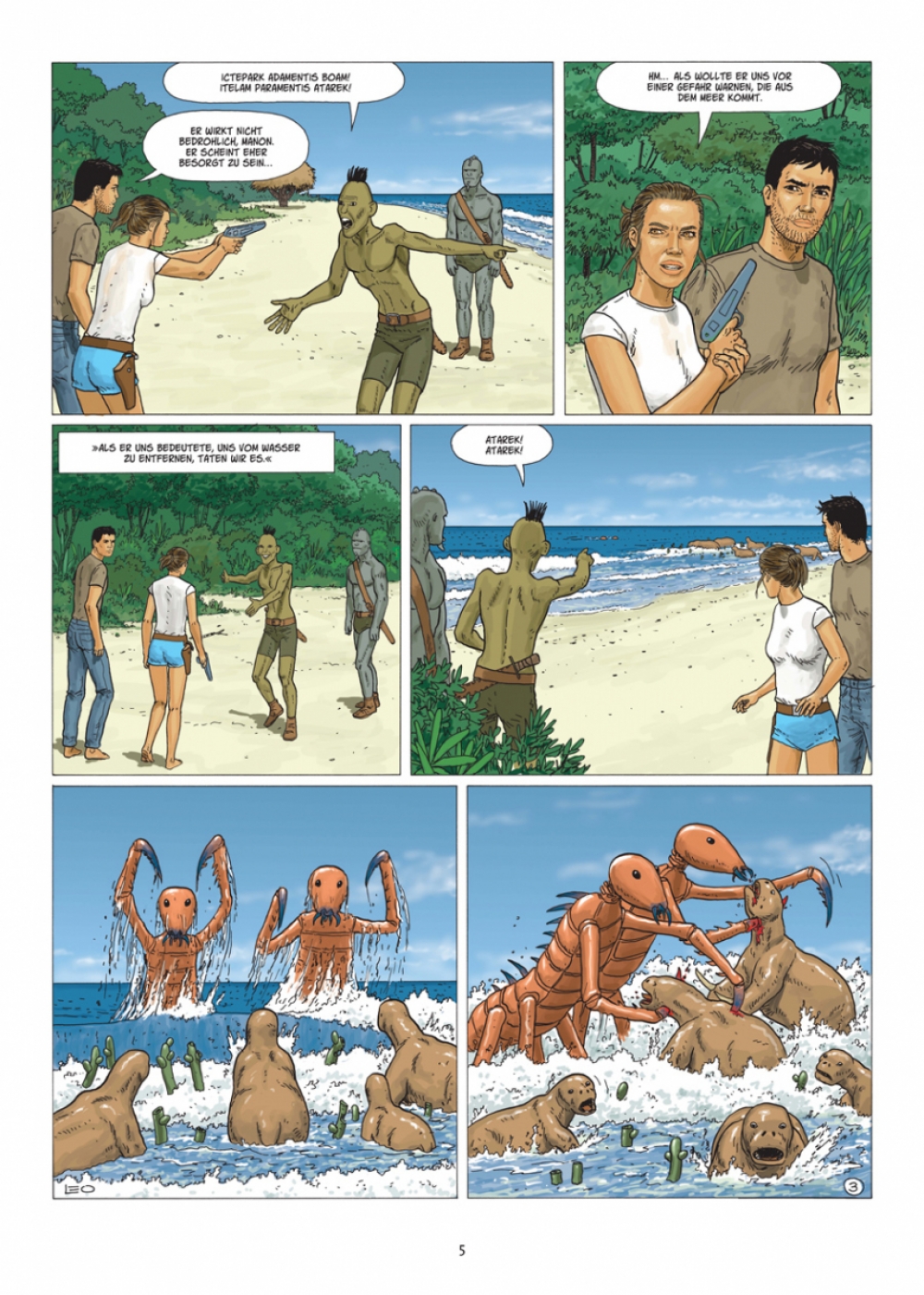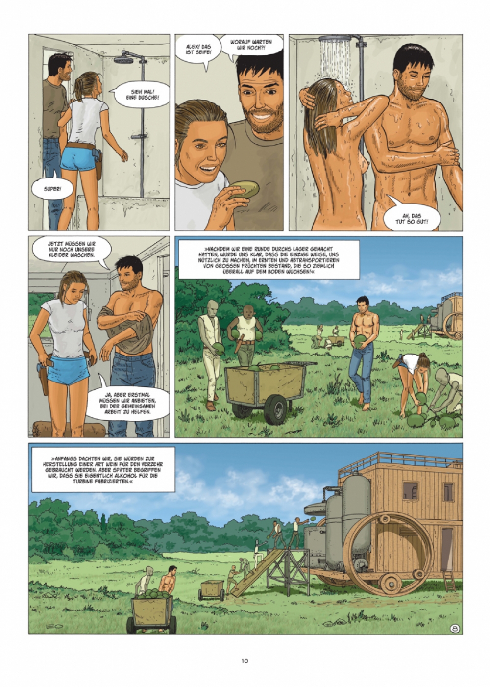 »Überlebende« ist nun keine direkte Fortführung dieses Erzählstrangs, sondern ein zunächst einmal unabhängiges Seitenstück zu Leos Erfolgssaga. Das hat den Reiz, dass er nun praktisch noch einmal bei Null anfängt – ohne aber seine gewohnten Stärken zu vernachlässigen: das Ausloten komplexer menschlicher Beziehungen und natürlich die fantasievolle Schilderung einer fremdartigen Flora und Fauna.