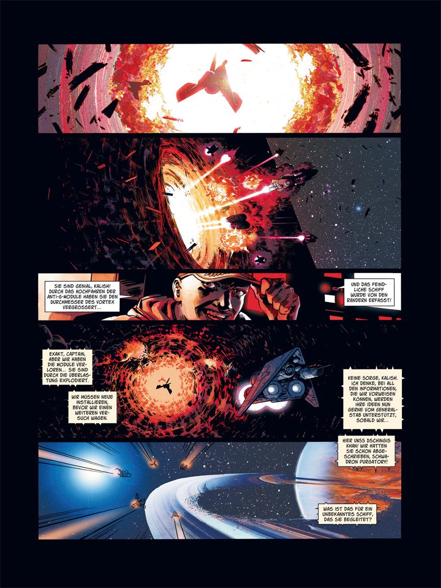 So gross, so dunkel, so undurchdringlich. Zwischen Saturn und Jupiter, im Herzen der jungen und wohlhabenden Staaten der Erdföderation, hat die dritte Flotte das Unmögliche vollbracht: einen Vortex in der Mauer zu öffnen. Doch die Schwadron Purgatory muss diesen ersten Sieg mit dem Leben eines Piloten bezahlen.