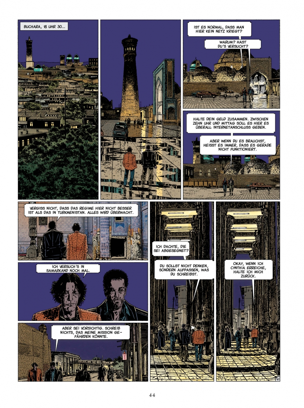 Stephan Clément will nach Mittelasien. Doch sein Bekannter Teri, den er auf seiner Tour für eine humanitäre NGO begleitet, plant krumme Sachen. Stephan gerät zwischen die Mühlen des Warlords Yudelshew und des usbekischen Geheimdienstes und schwebt zwischen Leben und Tod. Das dritte in diesem Band enthaltene Album, "The Lady of Shalott", schließt die Serie ab. Der Klassiker des Schweizers Daniel Ceppi vereint spannendes Abenteuer und Reisereportage.