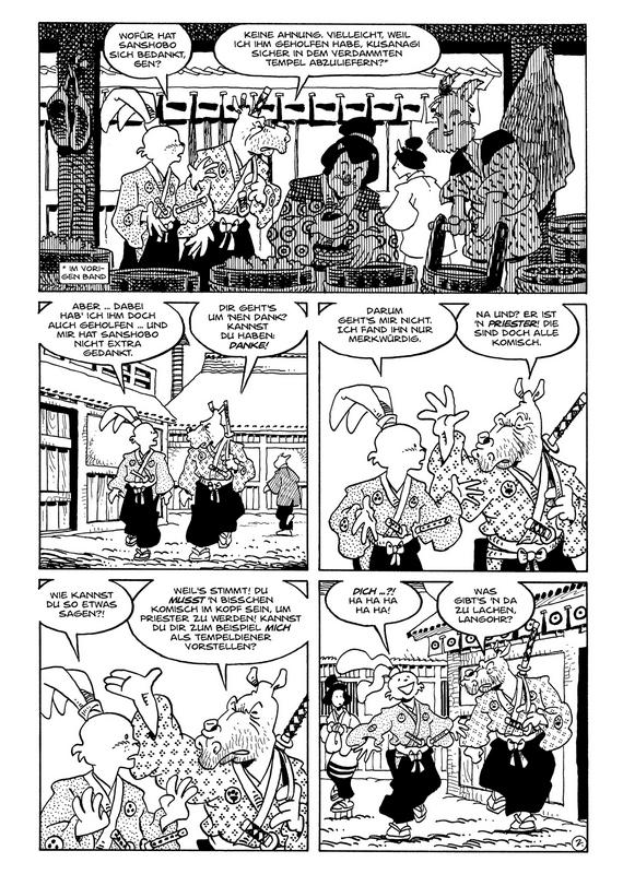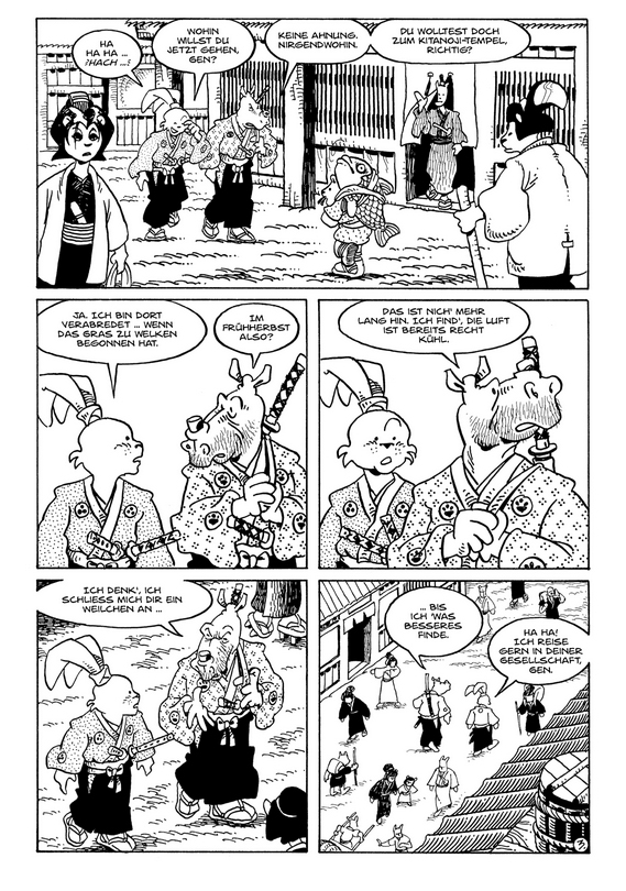 Auch in diesem Band webt der vielfach preisgekrönte Meistererzähler Stan Sakai wieder an seinem prächtig gewirkten Sittengemälde aus Handlungsfäden, seiner graphischen Fabel voller Abenteuer und Intrigen, voller Herz und Humor.