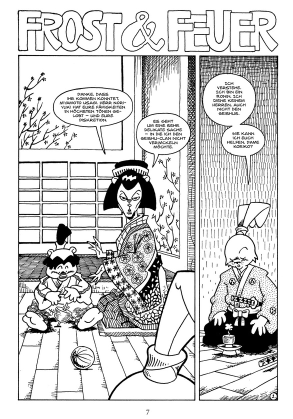 „Frost und Feuer“ sowie „Der Weg des Samurai“ sind große Seelendramen. Und eine der außergewöhnlichsten Geschichten, die Stan Sakai jemals erzählt hat, rundet den Band ab: „Eine Drachengeschichte“, in der uns der Meister der Graphic Fable einen Einblick in das Leben und die Arbeit eines Drachenbauers im Japan des 17. Jahrhunderts bietet.