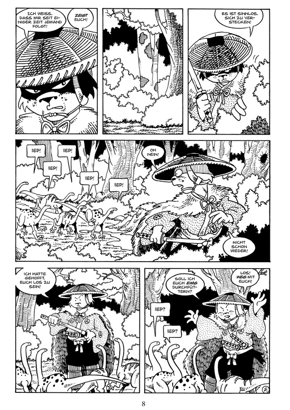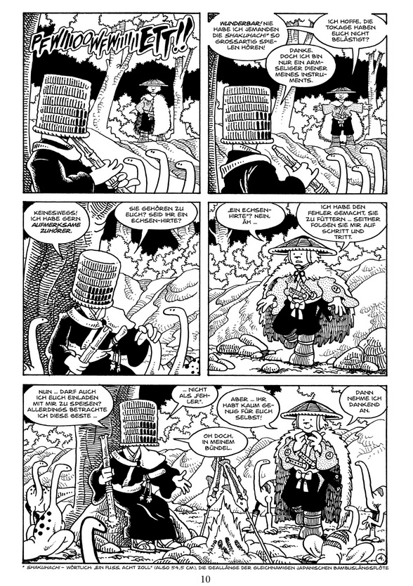In den in diesem Band versammelten Abenteuern sehen wir ihn als Schüler eines buddhistischen Mönchs, der ihn lehrt, auf der shakuhachi zu spielen, der traditionellen Bambusrohrflöte, und teilt seinen Lebenstraum, einmal der himmlischen Musik zu lauschen; dann wird Usagi widerstrebend in ein Duell um Blutgeld hineingezogen; und schließlich gelobt er, sein daisho aus den Klauen räuberischer Herumtreiber und ihres charismatischen Anführers zurückzugewinnen – um jeden Preis.