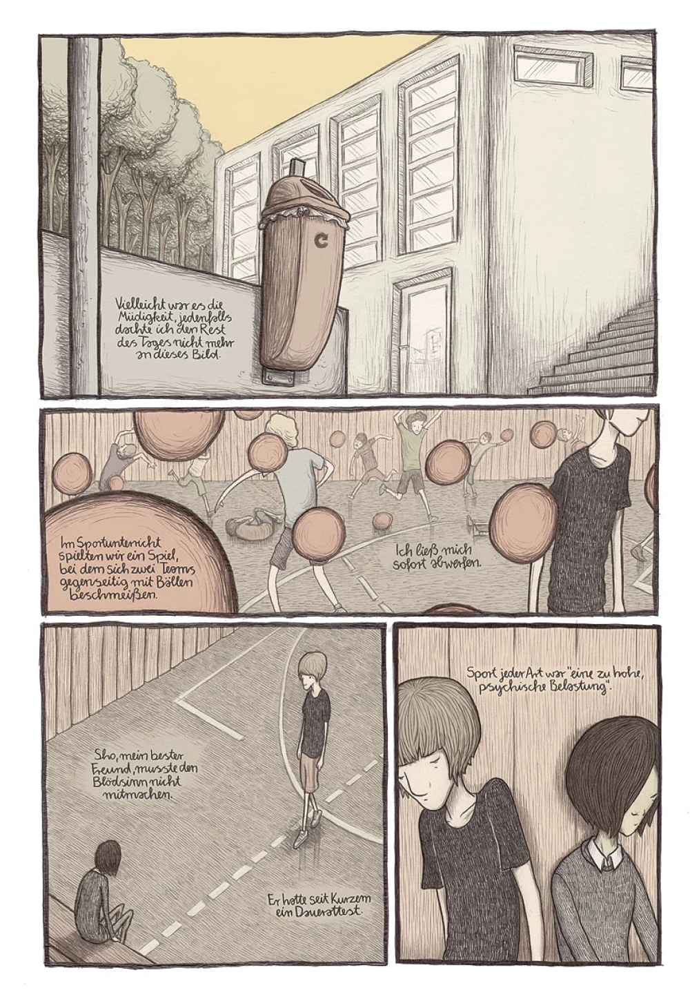 In seiner mitreißenden Erzählung um eine Gruppe von Teenagern geht Lukas Jüliger der Verunsicherung und diffusen Angst nach, die jenes Alter prägen. Dabei bettet er das vermeintlich alltägliche Geschehen in eine surreale, teils bedrückende Welt voller Geheimnisse ein.