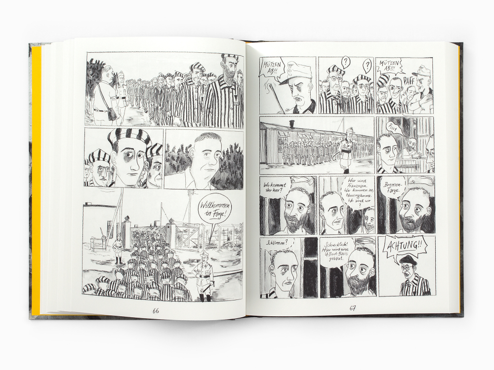 Basierend auf den Film- und Fotoaufnahmen von Johann Seubert, der für die Nationalsozialisten den Bau des U-Boot-Bunkers Valentin in Bremen Farge dokumentierte, und den Tagebuchaufzeichnungen von Raymond Portefaix, der als Jugendlicher aus dem französischen Dorf Murat nach Bremen Nord verschleppt wurde und als KZ-Häftling auf der Bunker-Baustelle landete, erzählt Jens Genehr in seinem Comic Valentin von diesem riesigen Rüstungsprojekt, bei dessen Umsetzung mehr als 1000 Zwangsarbeiter_innen aus ganz Europa starben.