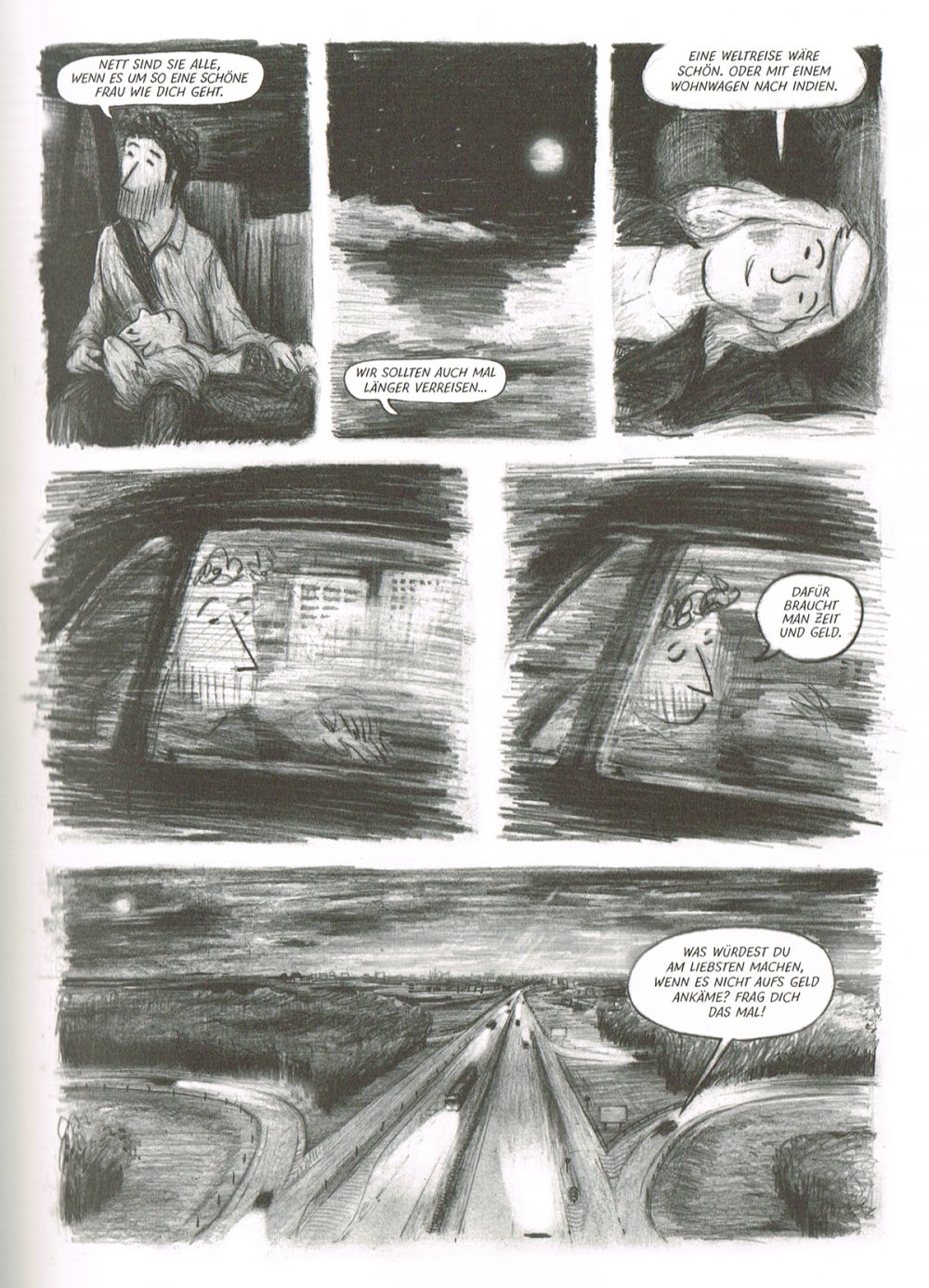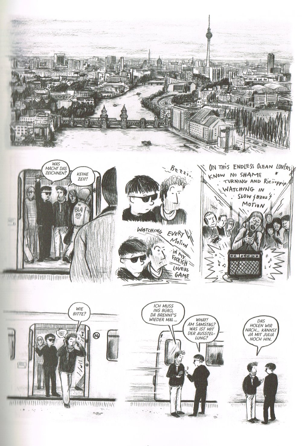 Mit viel Selbstironie und einem virtuosen Strich erzählt der deutsch-iranische Zeichner Hamed Eshrat in seinem Deutschland-Debüt eine charmante, beinah alltägliche Großstadtgeschichte, die nicht nur wegen plattensammelnder Kiezhelden und gebrochener Herzen an Nick Hornbys High Fidelity erinnert. Zeitgleich ist Eshrats Venustransit ein elegantes Portrait des modernen Berlins, das zwischen Easyjet-Touristen und Gentrifizierung um seine Freiräume kämpft.