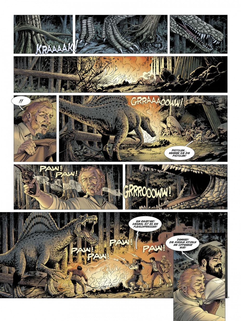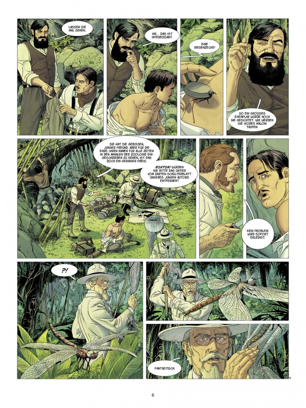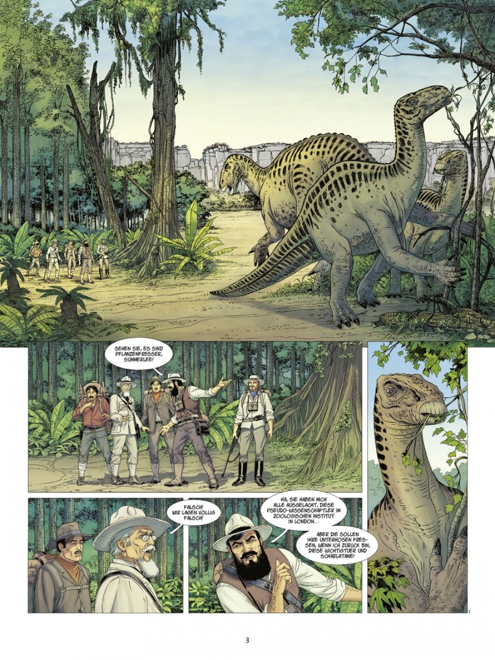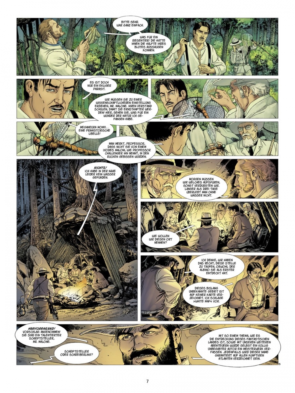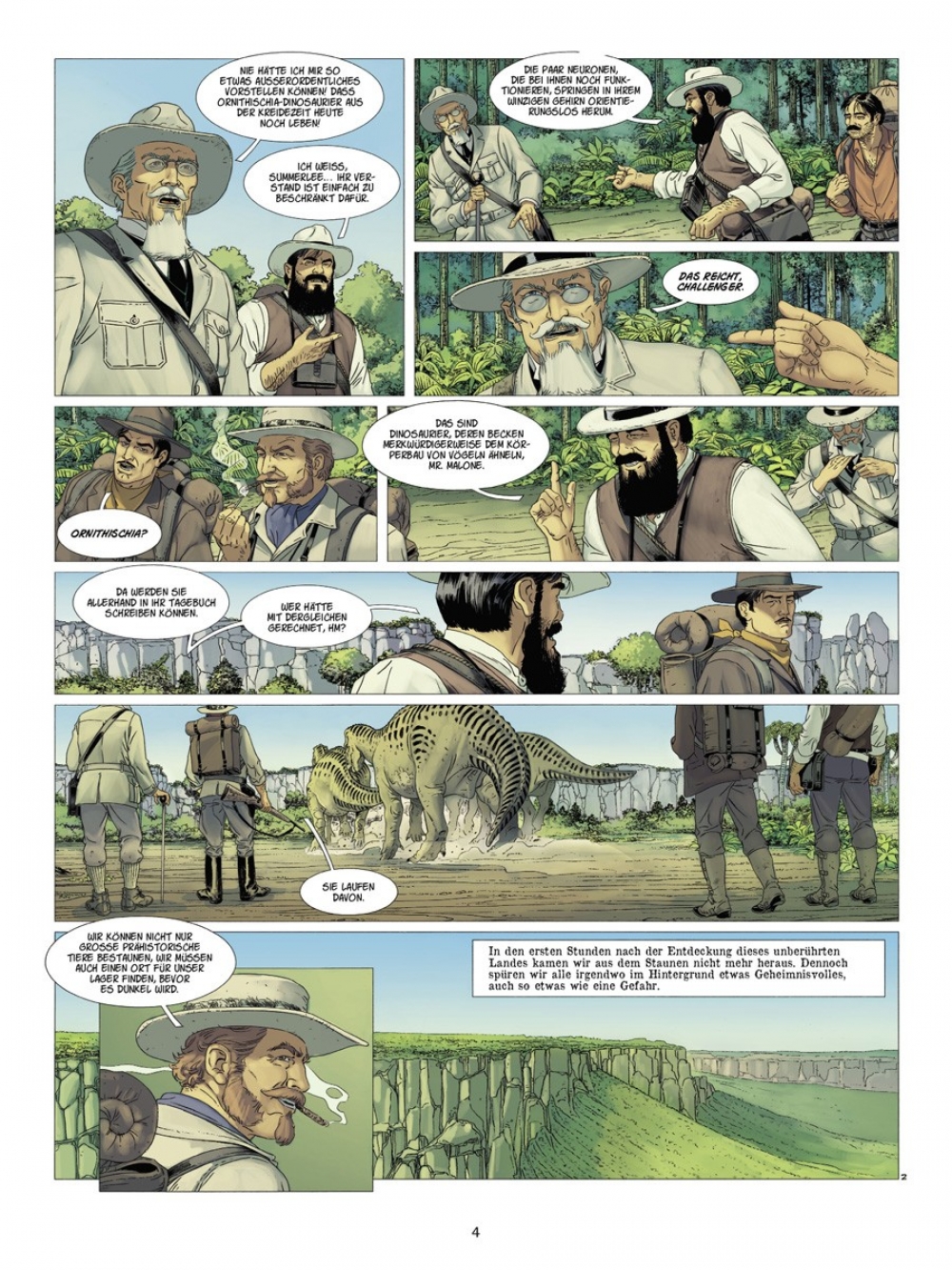 Aufgrund eines mysteriösen Reisetagebuchs, das dem englischen Professor Challenger zufällig in die Hände fällt, ist dieser davon überzeugt, dass die Spezies der Dinosaurier nicht ausgestorben ist und im Dschungel Amazoniens überlebt hat. Gemeinsam mit seinem Kollegen Summerlee, dem Journalisten Edward Malone sowie Lord John Roxton startet er eine Expedition nach Südamerika, um mithilfe seines Dokuments die urzeitlichen Tiere aufzuspüren. In Anlehnung an Conan Doyles berühmten gleichnamigen Roman lässt Christophe Bec den großartigen Professor George Edward Challenger als Comicfigur neu aufleben. Ein echter Leckerbissen für alle Fans von klassisch-exotischen Abenteuererzählungen.