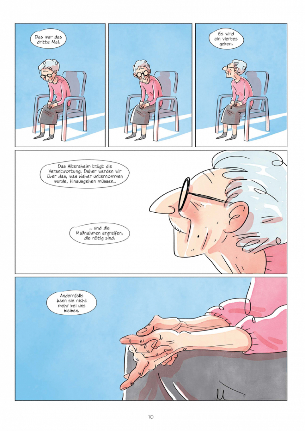 Für ihr eindrucksvolles Debütwerk schöpft Zeichnerin Alix Garin aus ihren eigenen Erfahrungen im Umgang mit Betroffenen von Demenzerkrankungen, die oft unheilbar und fast immer eine schwere Bürde für das Umfeld der Patienten sind. Einfühlsam, humorvoll und mit feinem Strich erzählt sie die Geschichte einer mutigen Flucht nach vorn.