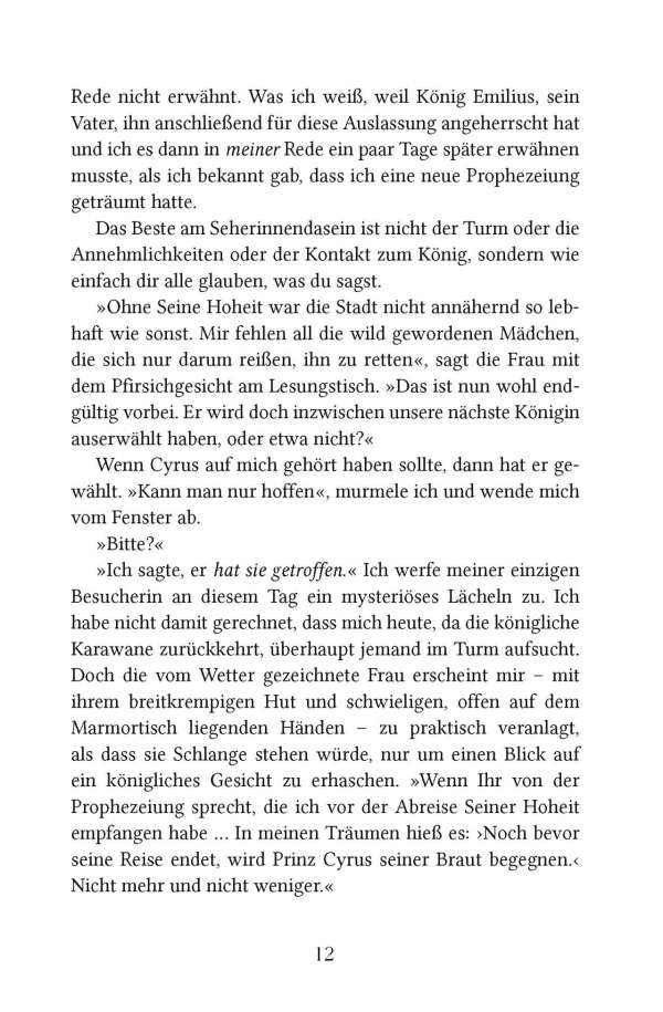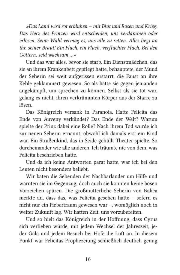 Doch als der König sie bittet, für einen bevorstehenden Ball Prophezeiungen bezüglich Cyrus’ Liebesleben zu fälschen, erweckt Violet einen gefürchteten Fluch zum Leben, der das Königreich entweder verdammen oder erlösen wird – je nachdem, für welche Braut sich der Prinz entscheidet. Auch Violet steht vor einer Wahl: entweder die Gelegenheit nutzen, ihr Schicksal in die eigene Hand zu nehmen, egal was es kostet, oder der wachsenden Anziehung zwischen ihr und Cyrus nachgeben.