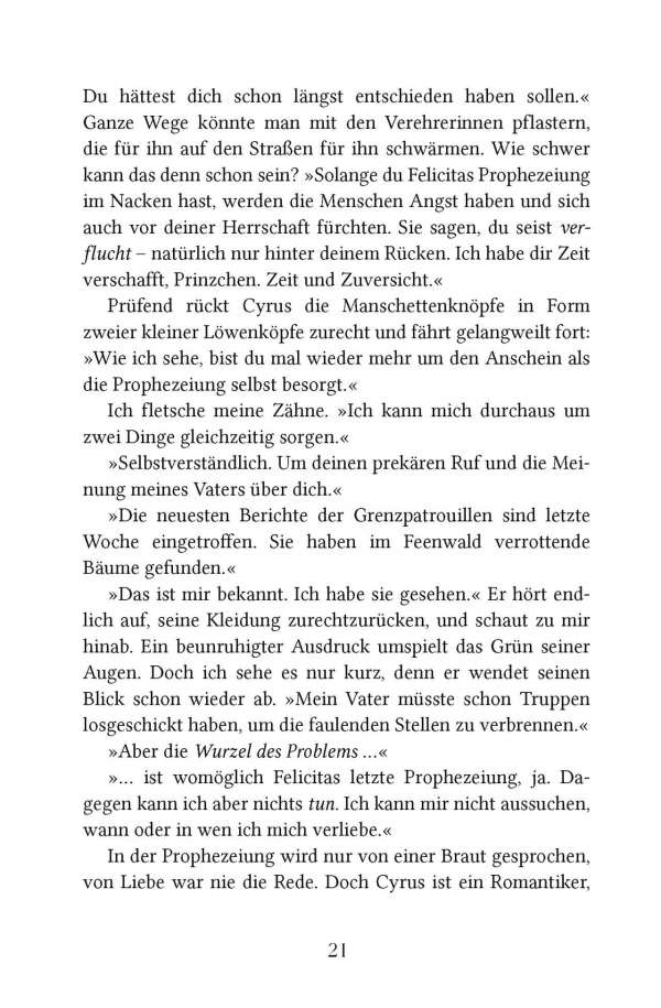 Violets scharfer Verstand mag sie bisher am intriganten Hof geschützt haben, doch auch er kann ihr Schicksal nicht ändern. Und während die Grenze zwischen Hass und Liebe bei Cyrus und ihr immer weiter verschwimmt, muss Violet ein teuflisches Netz der Täuschung entwirren, um sich selbst und das Königreich zu retten – oder für immer zu verdammen.