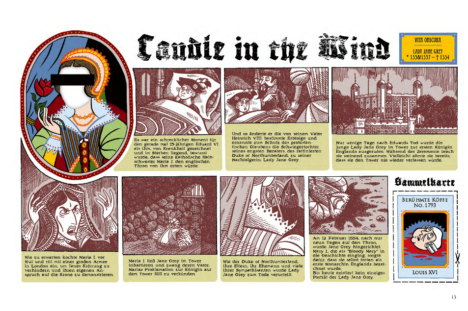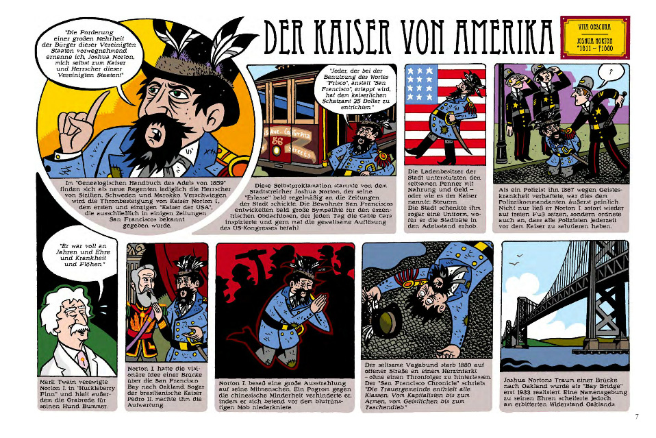 Sohnes Iwan des Schrecklichen, das blinde Musikgenie Moondog, der schöne Prinz Heinrich von Preußen. Und wer hat das Gehirn von Albert Einstein entwendet? Passend zum Lebenslauf erfindet sich diese Comic-Serie immer wieder neu - sei es als Collage, Kohlezeichnung oder als Relief. Gesamtausgabe der seit Januar 2012 in „Der Freitag“ vorveröffentlichten Serie - inklusive bisher unveröffentlichter Seiten!