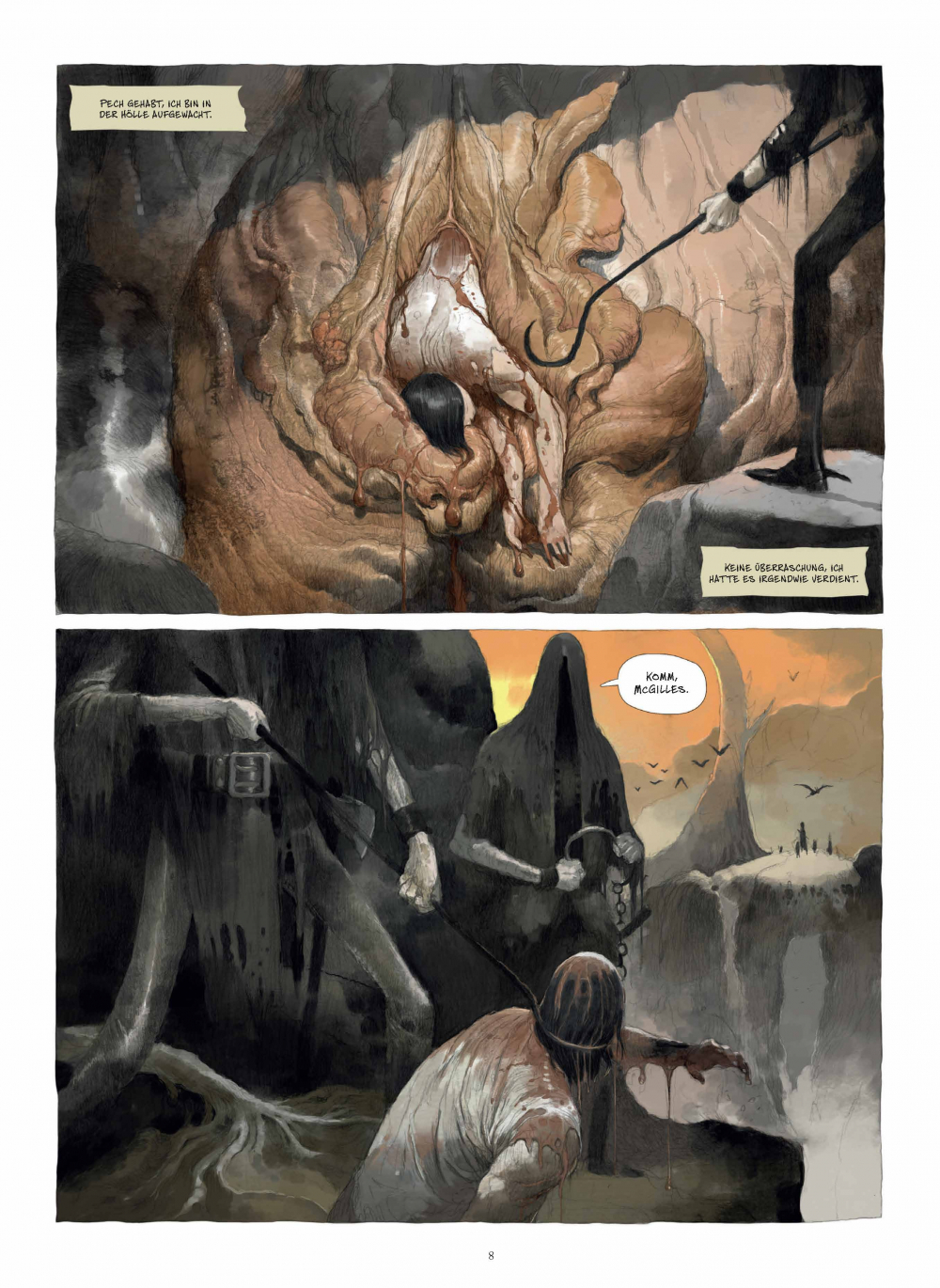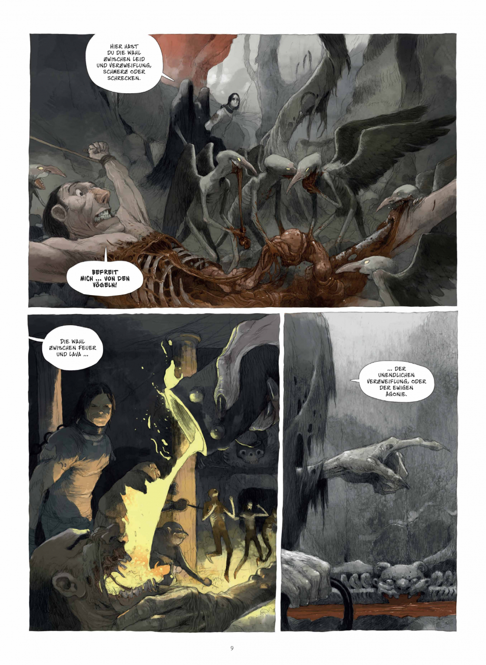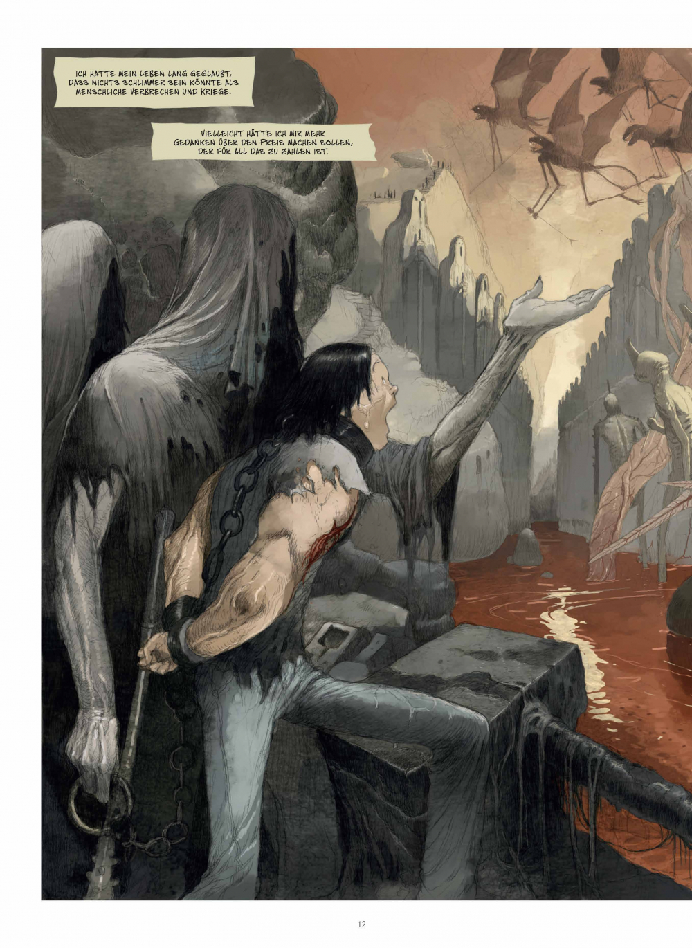 In WANKELMUT – DIE CHRONIK DER UNTERWELT lassen Autor Stephen Desberg (Der Skorpion, Die Unsterblichen) und Tony Sandoval (WASSERSCHLANGEN, DOOMBOY, 1000 STÜRME) in seinem unverkennbaren Artwork eine von Bosch und Dante inspirierte Höllenlandschaft entstehen.