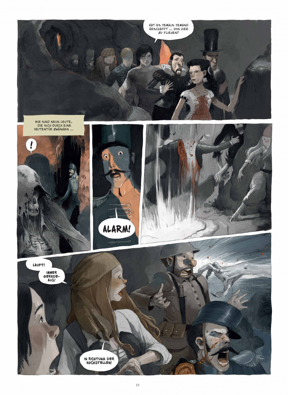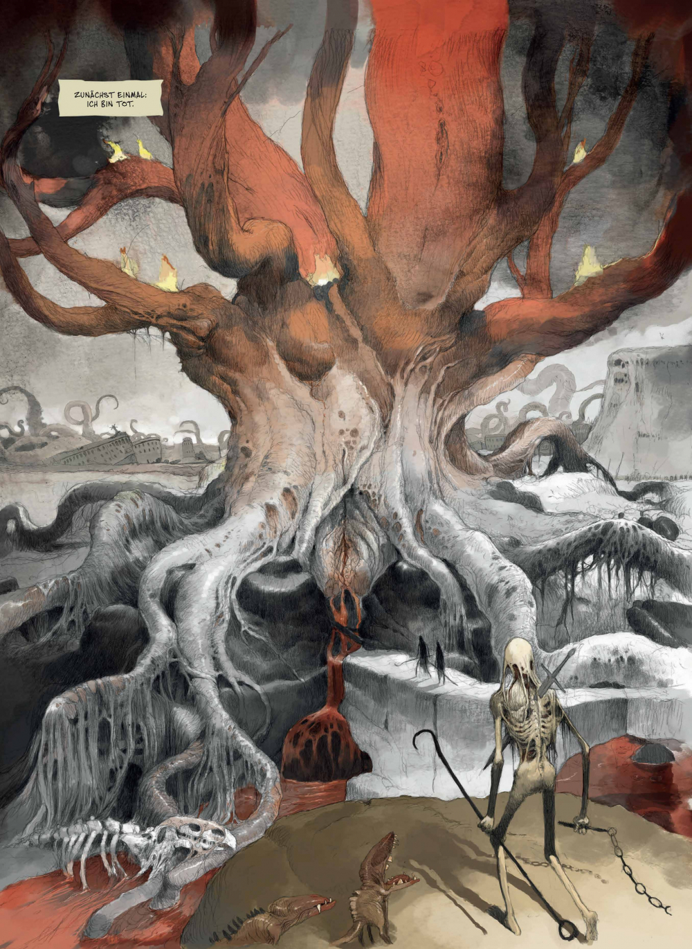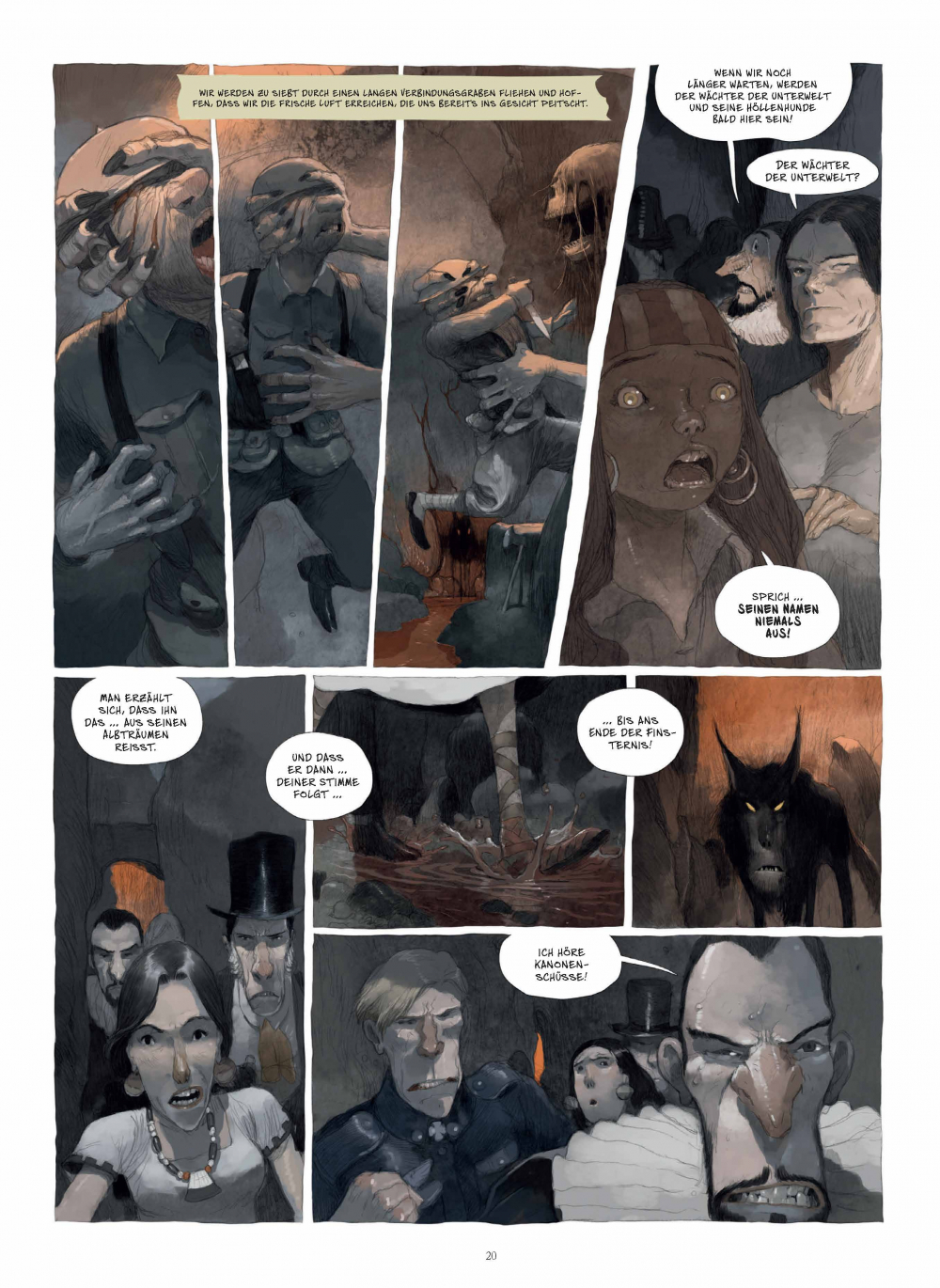 In WANKELMUT – DIE CHRONIK DER UNTERWELT lassen Autor Stephen Desberg (Der Skorpion, Die Unsterblichen) und Tony Sandoval (WASSERSCHLANGEN, DOOMBOY, 1000 STÜRME) in seinem unverkennbaren Artwork eine von Bosch und Dante inspirierte Höllenlandschaft entstehen.