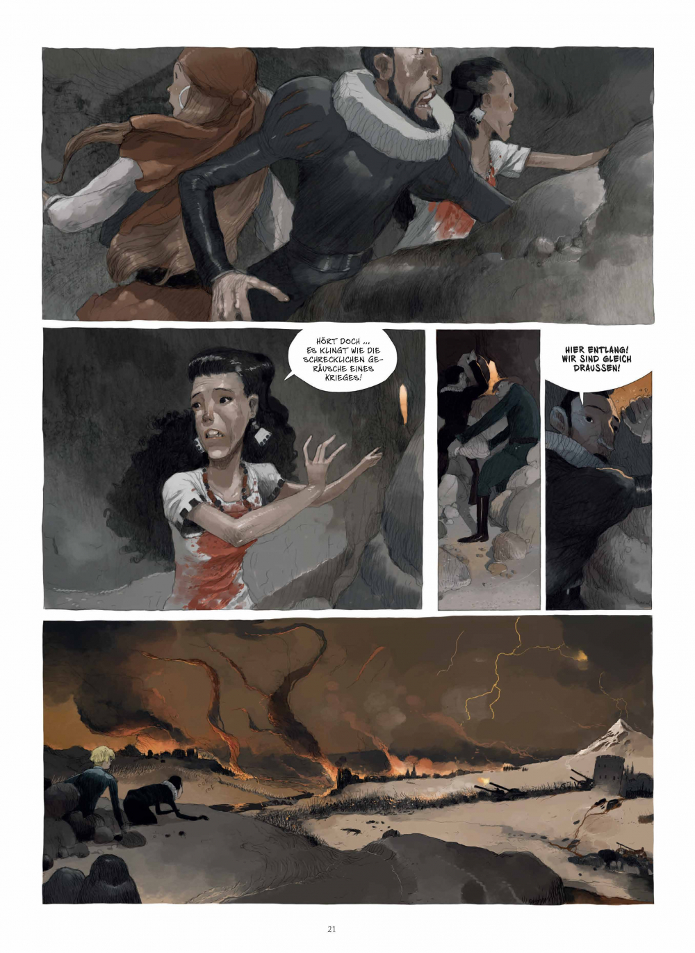 Auf der Flucht vor dem Wächter der Unterwelt und seiner Meute von Höllenhunden treffen Ian und seine Gefährten auf eine Karawane gefangener Fabelwesen, die als Opfergaben enden sollen. Unter diesen ist eine gefiederte Frau von atemberaubender Schönheit, die Ian in ihren Bann zieht. Ihr Name ist … Volage.