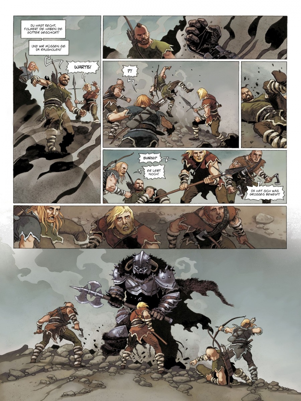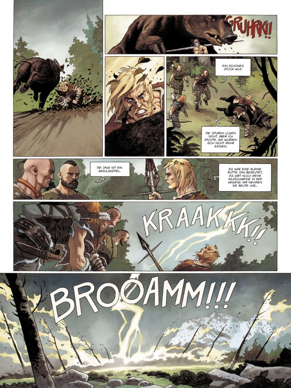 Während Alrik, Sohn des Königs Lothar, und seine Krieger der Spur eines Wildschweins folgen, beobachten sie in der Nähe den Einschlag eines gewaltigen Blitzes. Als sie sich dem Krater nähern, finden Alrik und die Seinen eine bewusstlose Walküre. Beim Versuch sich der jungen Frau nähern, um sie in Sicherheit zu bringen, verstellt ihnen ein titanenhafter Koloss den Weg…