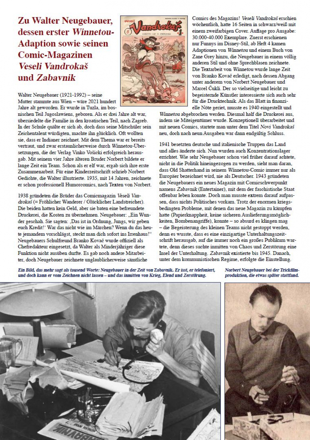 Aus vielerlei Gründen hatte sich die Fertigstellung des sehr aufwendigen Band 1 stark verzögert, doch nun ist es geschafft. Er enthält auf 200 Seiten alles was Walter Neugebauer zu Karl Mays Winnetou I geschaffen hat und viel ergänzendes Material.
