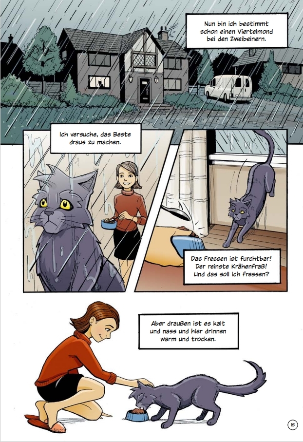 Einst wurde Graustreif von Zweibeinern gefangen und lebt bis heute bei ihnen. Es gibt Momente, in denen er sich eigentlich wohlfühlt, aber oft hat er Heimweh. Als er die ungestüme Millie kennenlernt, beschließt er, zum DonnerClan zurückzukehren. Natürlich nicht ohne Millie! Doch der Weg ist beschwerlich und voller Abenteuer ...