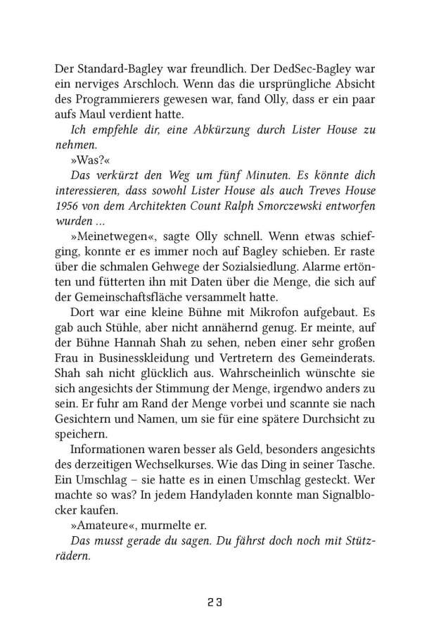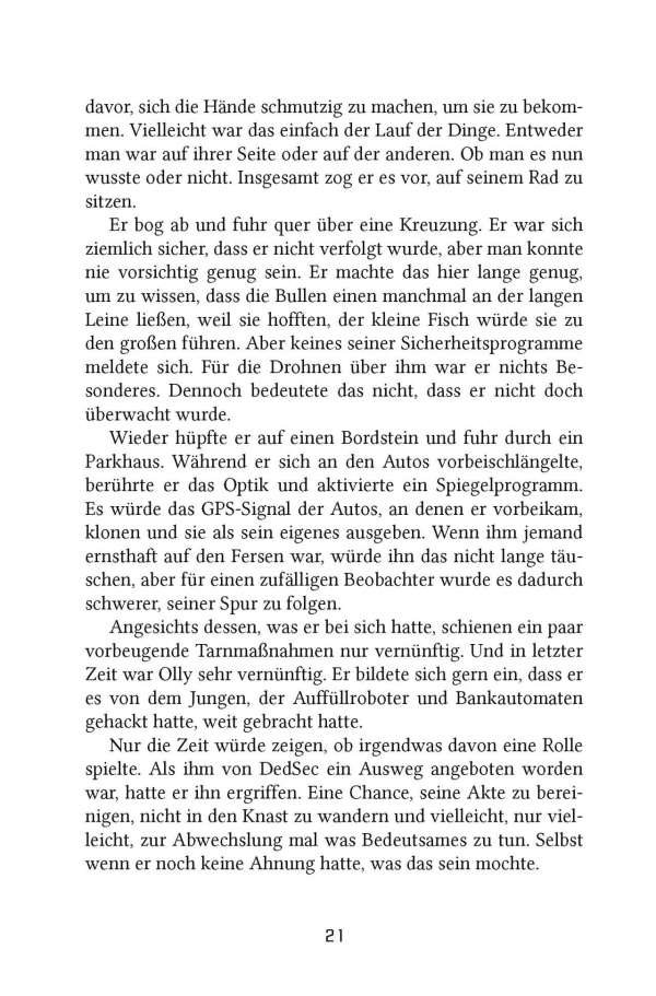 Fahrradkurier Olly Soames ist der neueste Rekrut der Widerstandsbewegung DedSec, doch als direkt vor seinen Augen ein Fremder erschossen wird, beginnt er zu begreifen, dass die Gefahr viel näher ist, als er dachte …