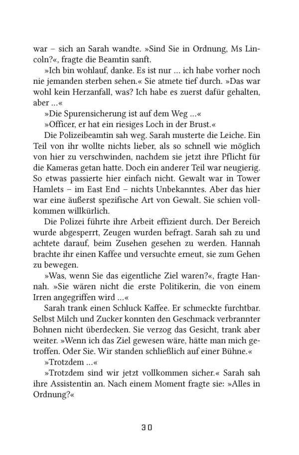 Sarah Lincoln ist eine aggressive junge Politikerin mit fragwürdigen Methoden und großen Ambitionen, und als sich in ihrem Wahlbezirk eine Mordserie ereignet, könnte das die Gelegenheit sein, auf die sie gewartet hat, um sich einen Namen zu machen …