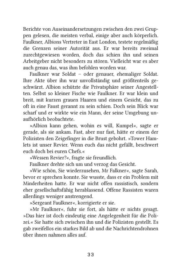 Und ihr Bruder Danny, ein Ex-Soldat, muss erkennen, dass ihn seine neue Anstellung bei dem privaten Sicherheits- und Militärunternehmen Albion einen sehr dunklen Pfad hinabführt, auf Entscheidungen zu, die er womöglich nie zurücknehmen kann …