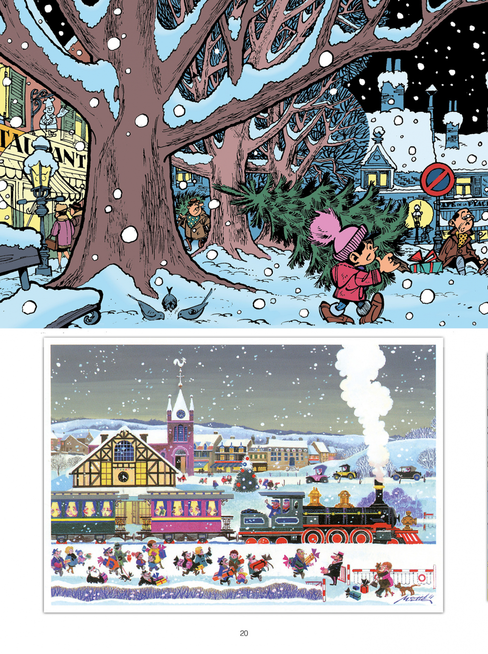 Während seiner Tätigkeit für das Comicmagazin Tintin in den 1960er-Jahren wurde Mittéï quasi zum „Weihnachtsmann“ der Zeitschrift. Er gestaltete etliche stimmungsvolle Cover, steuerte winterliche Illustrationen für die Rubrik »Tintin-Auto« bei und schuf neun Kurzgeschichten zum Thema, darunter eine Adaption von Charles Dickens’ Eine Weihnachtsgeschichte. All diese Arbeiten finden sich hier nun in Form eines schmucken Albums vereint.