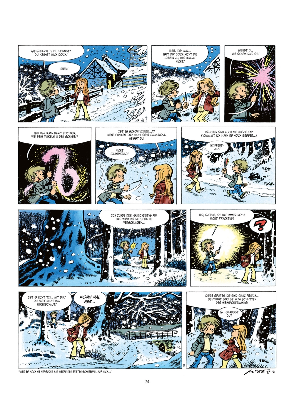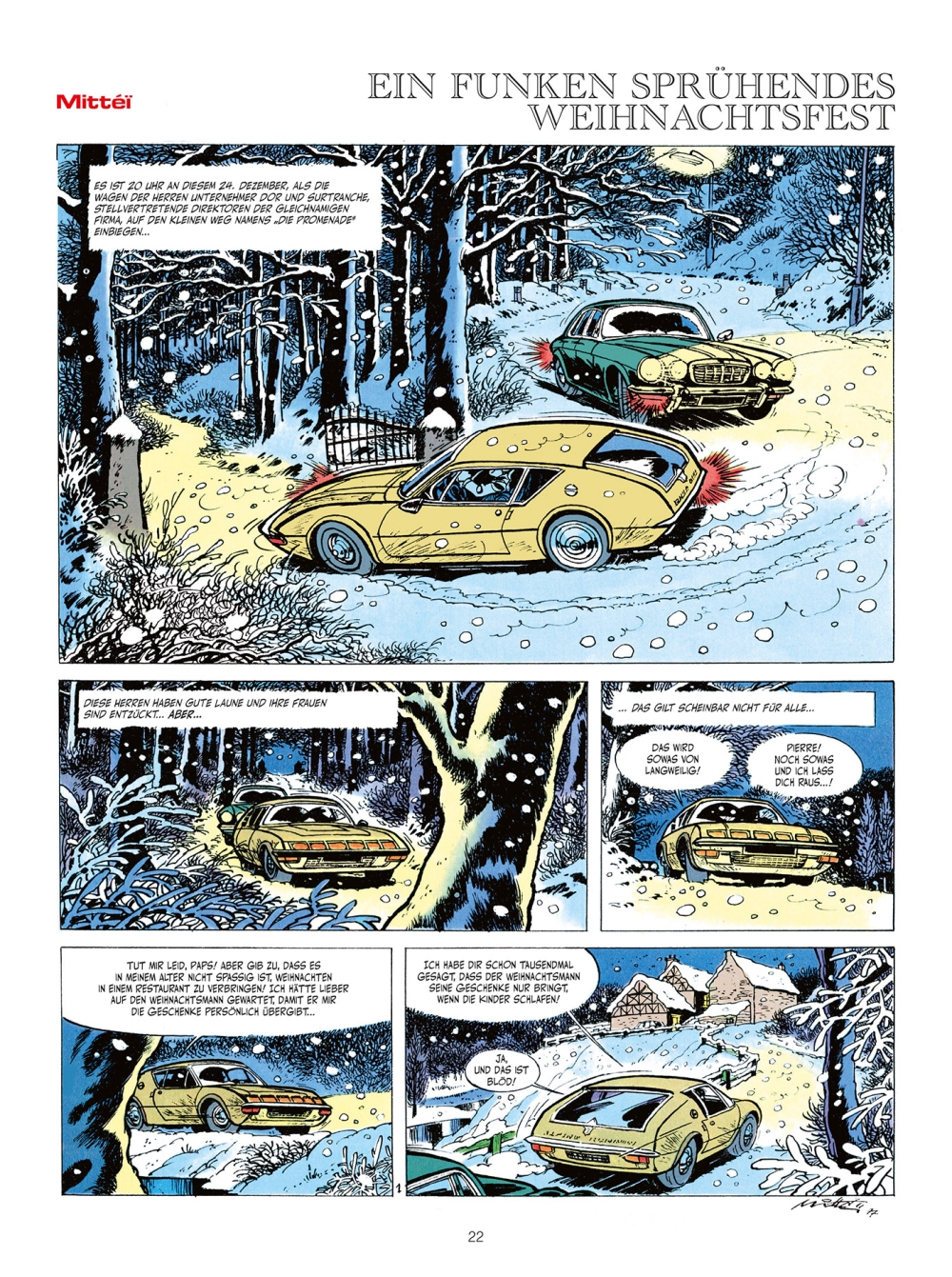 Zeit seines Lebens war der belgische Autor (Die Minimenschen) und Zeichner (Die Abenteuer der 3A) Jean Mariette, der unter dem Künstlernamen Mittéï bekannt geworden ist, von der weihnachtlichen Stimmung fasziniert. Nachdem er in den 1960er-Jahren für das Magazin Tintin etliche stimmungsvolle Cover, winterliche Illustrationen und Kurzgeschichten zum Thema Weihnachten beigesteuert hatte, fertigte Mittéï nach seinem Wechsel zu Spirou von 1975 bis 1985 sechs weitere Weihnachtsgeschichten und drei Cover an. Besonderes Augenmerk der in diesem schmucken Band vereinten Erzählungen verdienen eine Zusammenarbeit mit Pierre Seron (Die Minimenschen) sowie Adaptionen von Die drei stillen Messen und Eine Weihnachtsgeschichte.