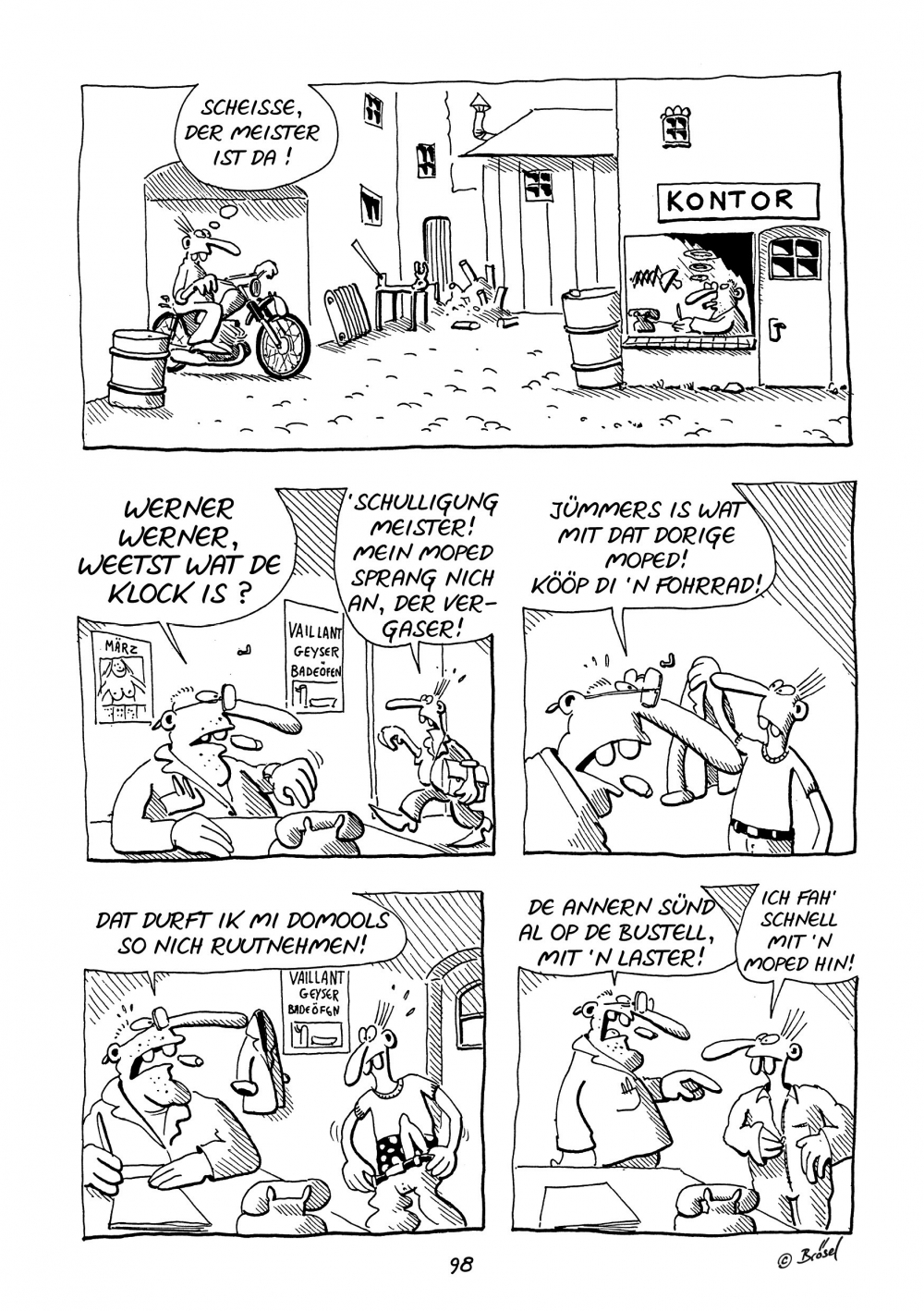 Nach heißen und eiskalten Zeiten für Werners Zeichner Brösel alias Rötger Feldmann drückt er im eigenen Bröseline Verlach jetzt wieder voll auf die Tube! Nach dem Verlachsdebüt WERNER – WAT NU!? (Band 13, 2018) – dem ersten Werner-Band seit 14 Jahren – geht’s nun mit den ersten sechs Bänden weiter – und zwar in HDO (High Definition Offset)! So gut sah Werner noch nie aus!