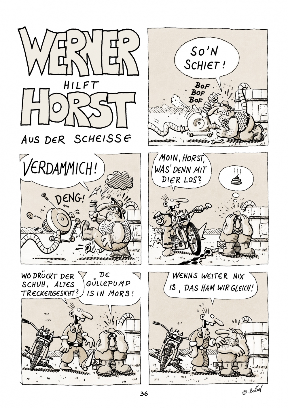 Nach heißen und eiskalten Zeiten für Werners Zeichner Brösel alias Rötger Feldmann drückt er im eigenen Bröseline Verlach jetzt wieder voll auf die Tube! Nach dem Verlachsdebüt WERNER – WAT NU!? (Band 13, 2018) – dem ersten Werner-Band seit 14 Jahren – geht’s nun mit den ersten sechs Bänden weiter – und zwar in HDO (High Definition Offset)! So gut sah Werner noch nie aus!