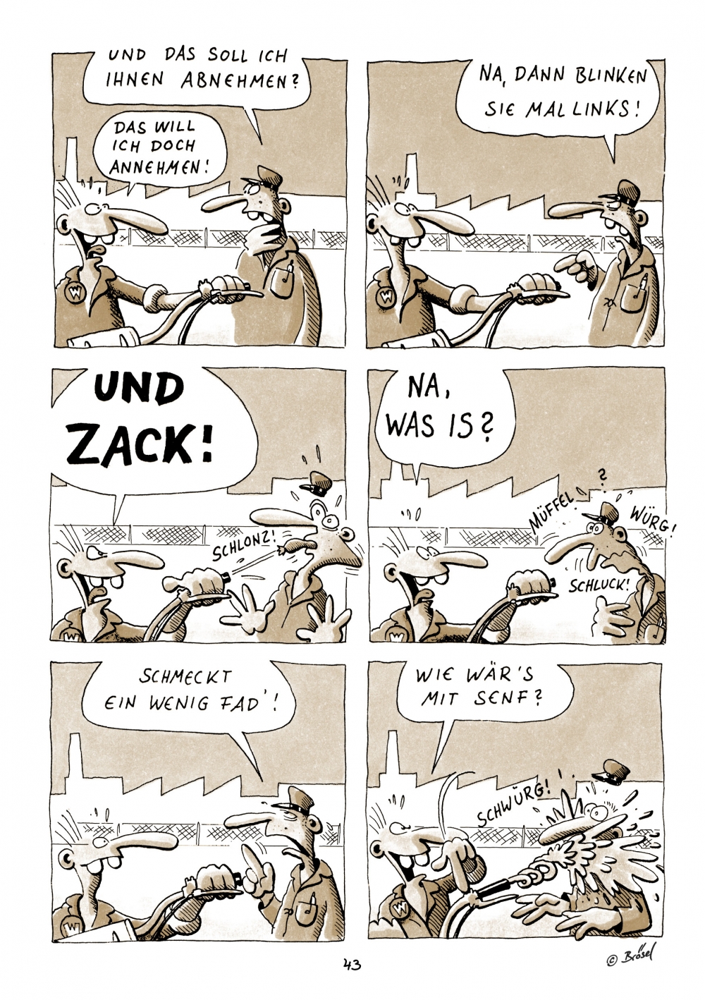 Rötger "Brösel" Feldmann erblickte 1950 in Travemünde das Licht der Welt. Seine Lehre zum Lithografen schloss er ab – man mag es kaum glauben. Danach gönnte er sich eine 6-jährige Auszeit in Form von arbeitslos und Spaß dabei. In dieser kreativen Schaffensphase widmete er sich zunehmend dem Zeichnen von Comics.