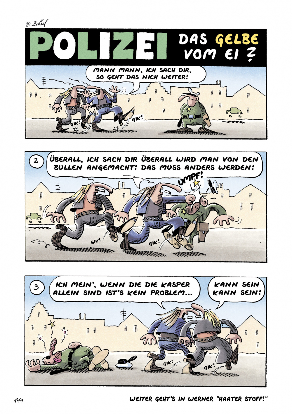 Jeder verbindet Comiczeichner Brösel mit seiner Figur Werner. Doch schon in der Prä-Werner-Zeit kommt es aufgrund einer sechsjährigen Arbeitslosigkeit und einer ständigen Residenz in einem Bermudadreieck aus drei Kneipen zu kreativen Höchstleistungen. Die Themen Konsumterror, politische Willkür und Gewaltfantasien gegenüber Ordnungshütern spielen eine zentrale Rolle in Brösels Frühwerk. Hinzu gesellt sich ein prüfender Blick hinter die scheinbar heile Fassade des Bürgertums und eine Abhandlung über die Vorzüge des Nicht-Arbeitens. Zahlreiche der im Satire-Magazin "Pardon" veröffentlichten Arbeiten sowie einige gänzlich unveröffentlichte Comics sind hier erstmals vernünftig versammelt und zeigen, dass viele der damals behandelten Themen noch heute brandaktuell sind.