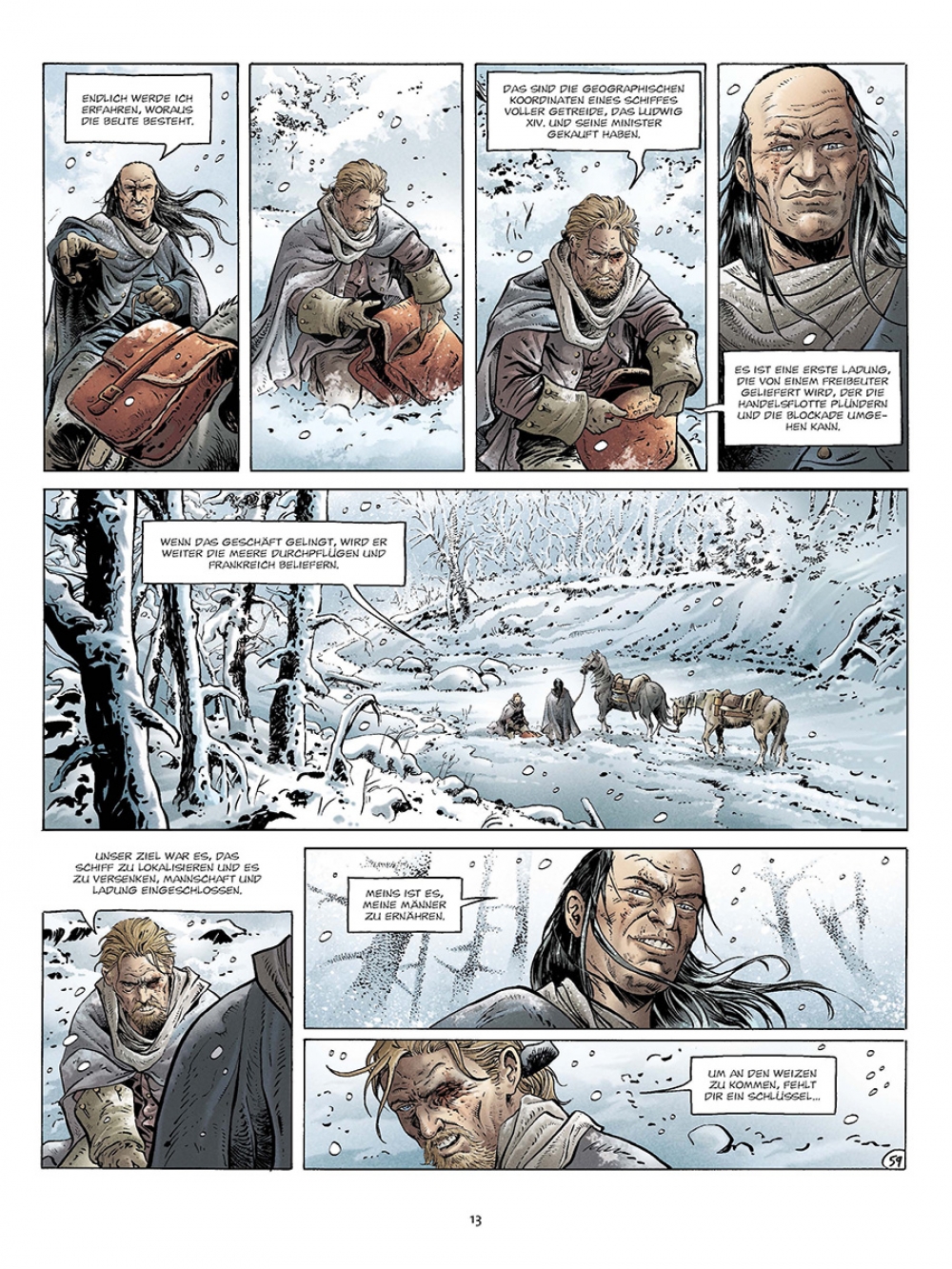 Eine Geschichte wie ein unterkühlter Western, von Philippe Xavier (»Kreuzzug«, »Conquistador«) in packende Mantel-und-Degen-Szenen und Bilder voll eisiger Schönheit gefasst. Eine aufwühlende Erzählung, die den Leser eiskalt erwischt – aber wärmstens zu empfehlen!