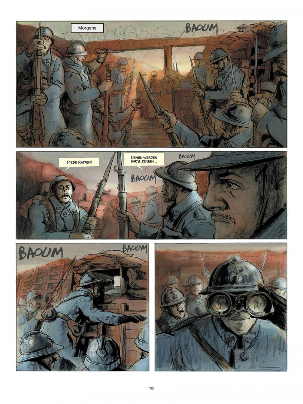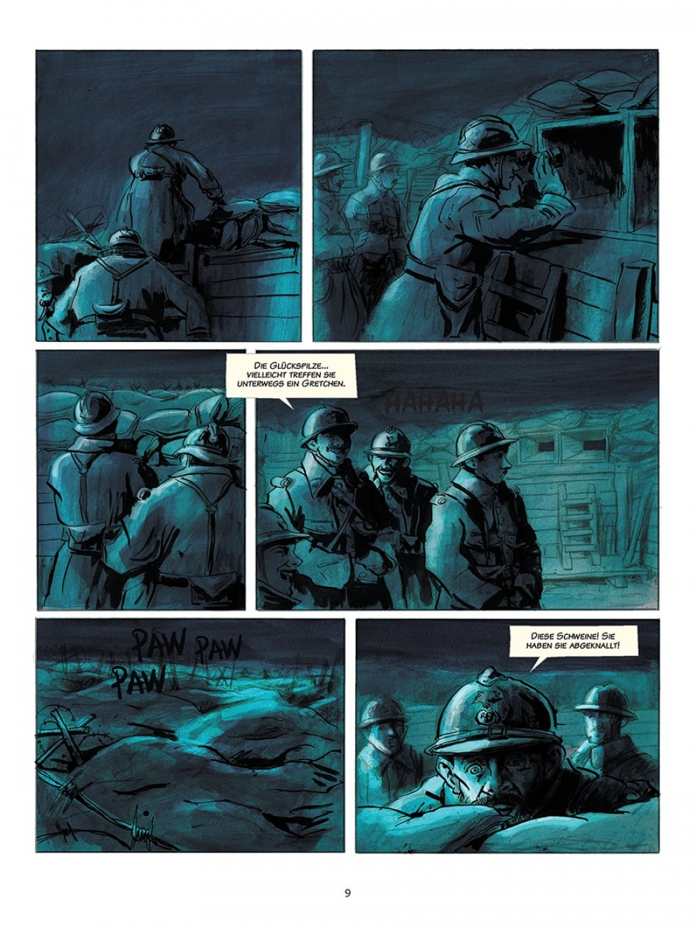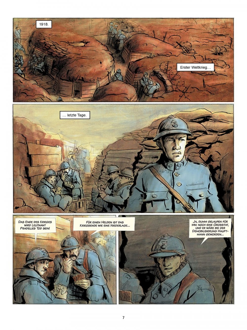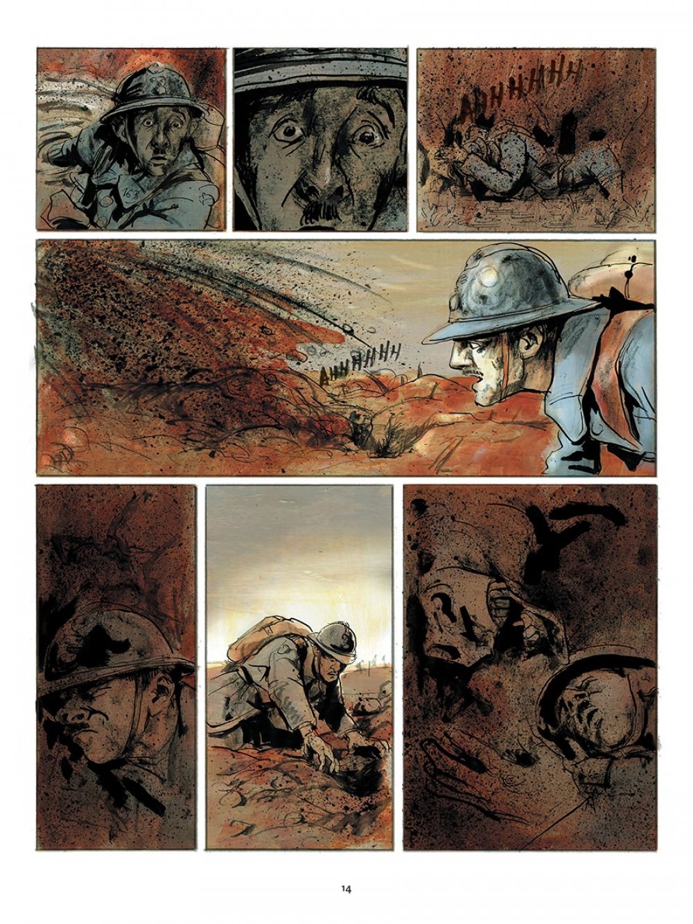 Pierre Lemaitres Roman »Wir sehen uns dort oben« war 2013 ein literarischer Überraschungserfolg in Frankreich und gewann sogar den renommierten Prix Goncourt. Ein dickes, 500 Seiten pralles Buch, das zwischen Schwejkiade und galliger Groteske pendelt und dabei voller starker Bilder steckt. Darum hat Lemaitre selbst für eine Comic-Fassung gesorgt und mit Christian de Metter (»Shutter Island«, »Scarface«) einen ausgezeichneten Illustrator gefunden, der mit seinen Zeichnungen und dank seiner durchdachten Farbgebung die Stimmung der Erzählung perfekt auf den Punkt bringt. Ohne viele Worte übrigens, schließlich kann Edouard aufgrund seiner Kriegsverletzung nicht mehr reden. Ein aufsehenerregender Comic-Roman, der seiner Vorlage mehr als gerecht wird.