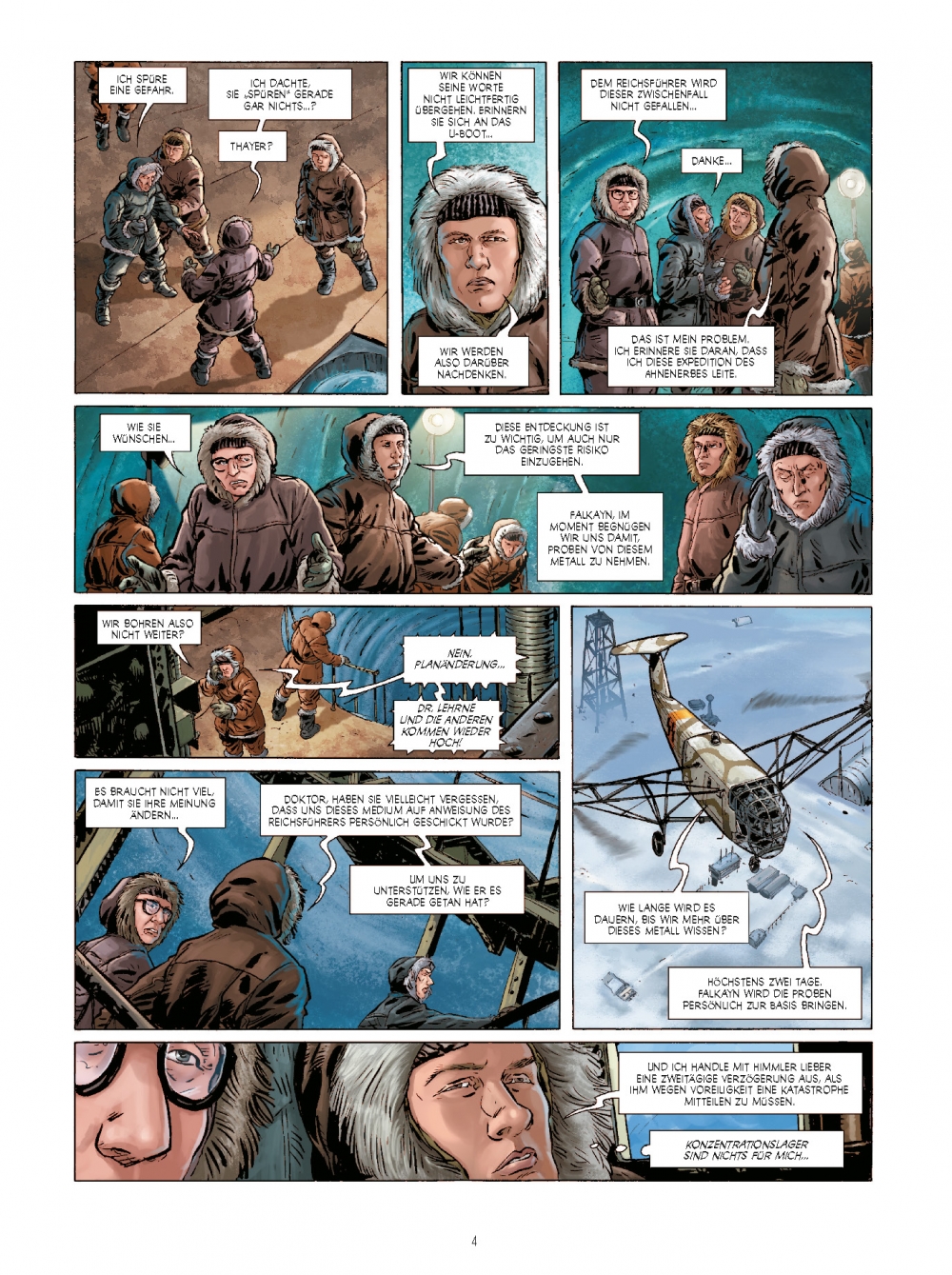In einem gnadenlosen Wettlauf gegen die Zeit bringen Handels-U-Boote Murnaus Wunderwaffen-Staffel zur Basis in Neuschwabenland, während ein Angriff der englisch-französischen Marineluftstreitkräfte unmittelbar bevorsteht. Währenddessen haben die Spekulationen um das metallische Artefakt, versteckt unter dem Eis der Antarktis, zugenommen und fachen nicht nur das Interesse des Ahnenerbes immer weiter an, sondern auch - und vor allem - das von Himmler persönlich...