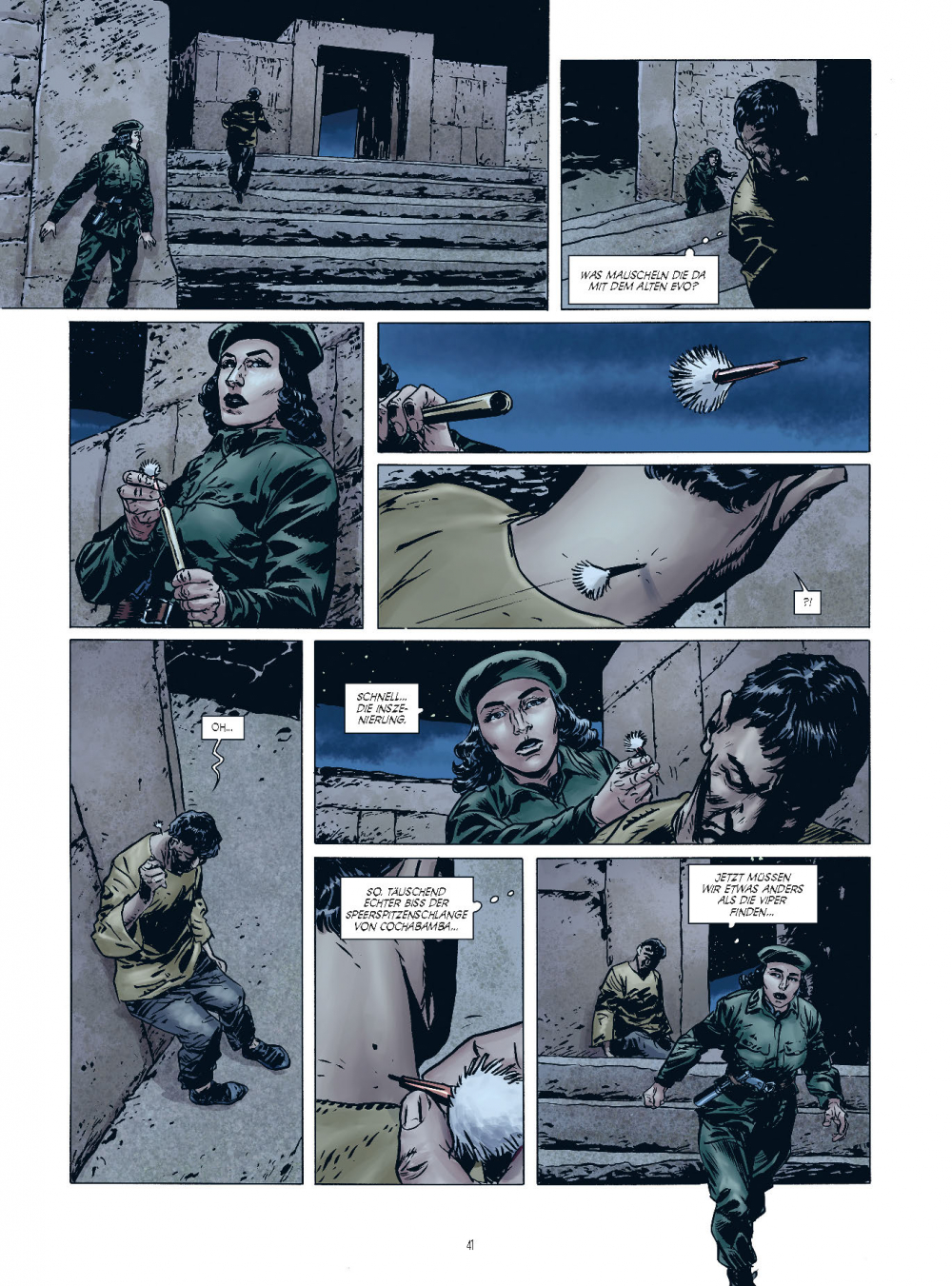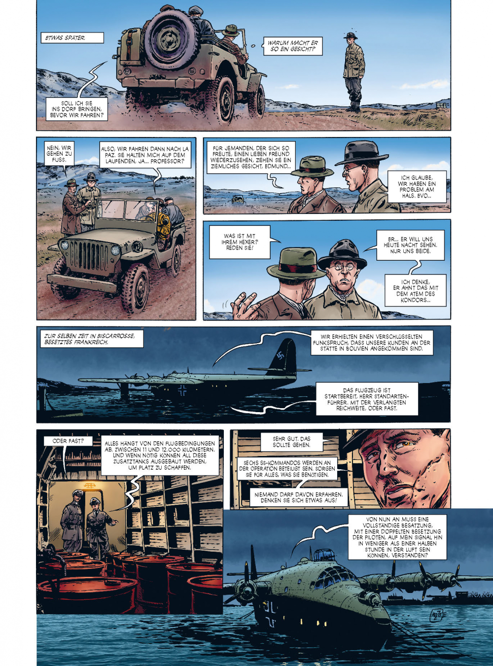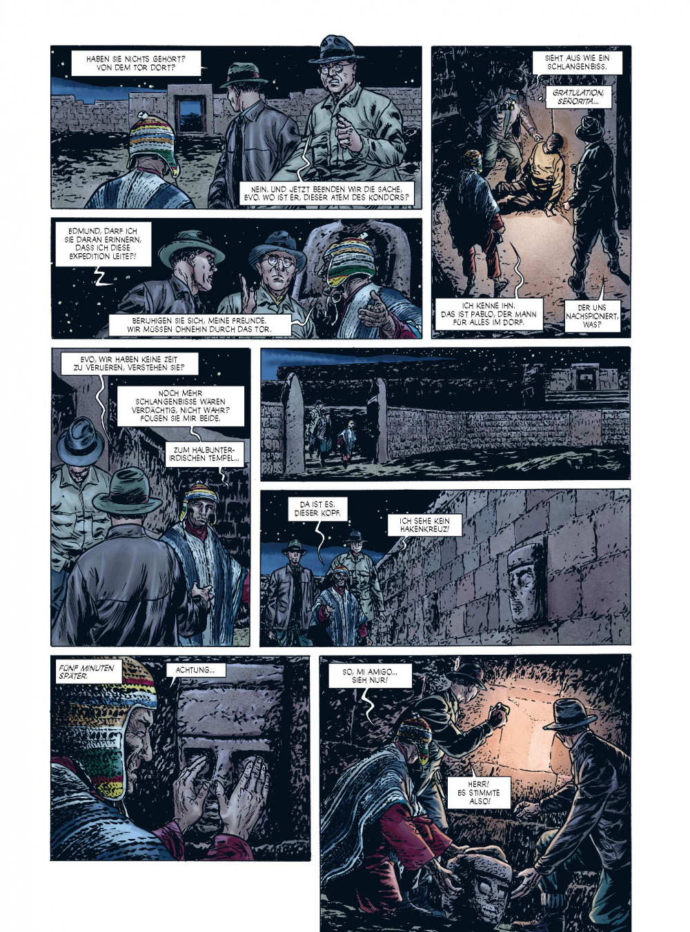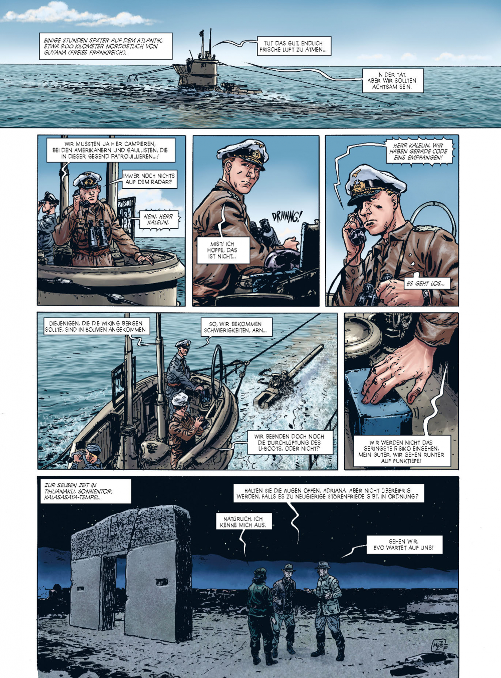 Von einer Untersuchung auf dem Panzerkreuzer Tirpitz zurückgerufen, wird der auf Problemfälle der Kriegsmarine spezialisierte Ermittler Korvettenkapitän Wolfart mit dem Nazi-Archäologen Edmund Kiß, der davon überzeugt ist, dass Tihuanaku nach einem planetaren Kataklysmus von arischen Atlantern gegründet wurde, auf den Fall angesetzt. Gemeinsam begeben sie sich auf die gefährliche Reise zur Hochebene des Altiplano…