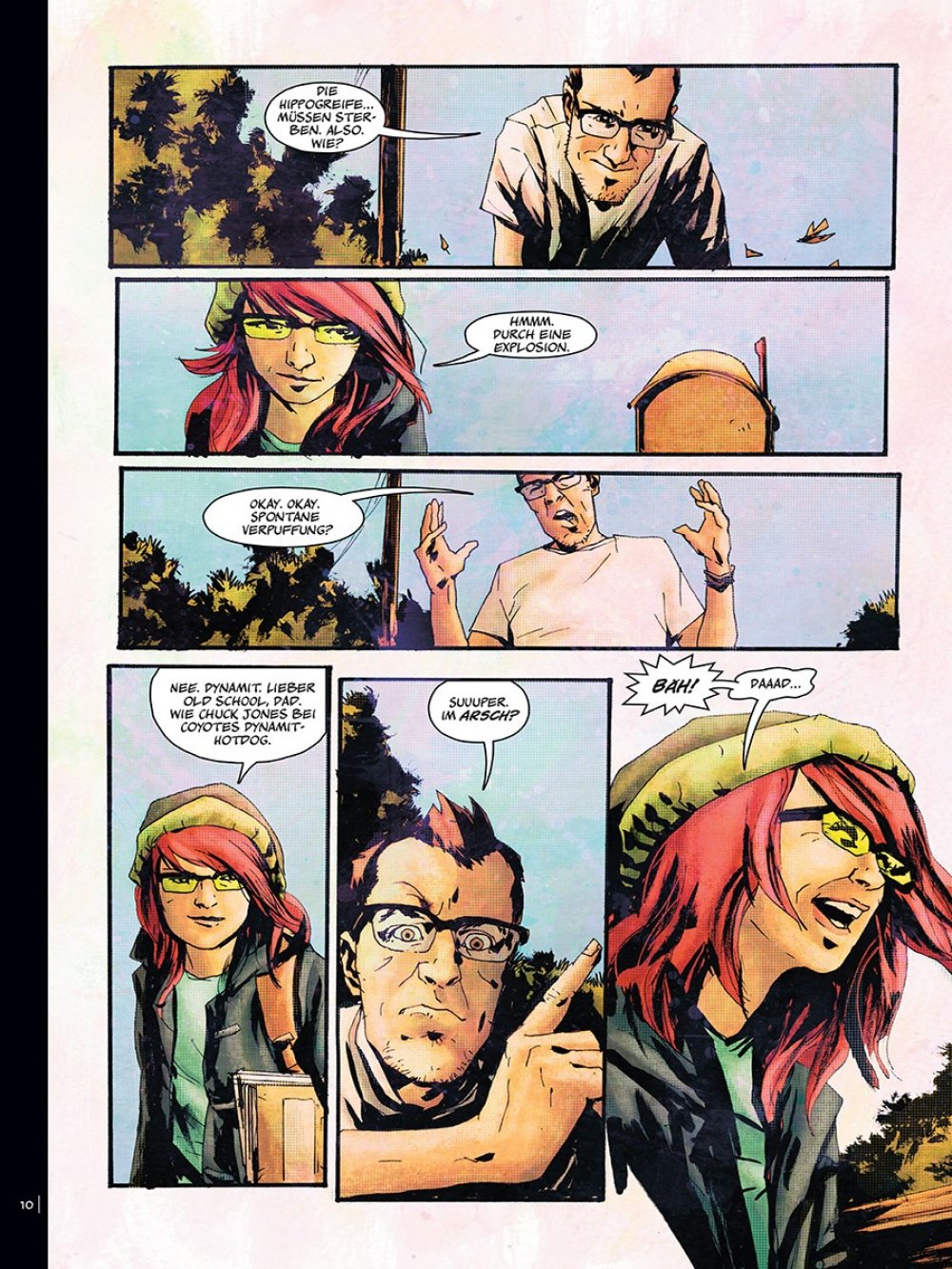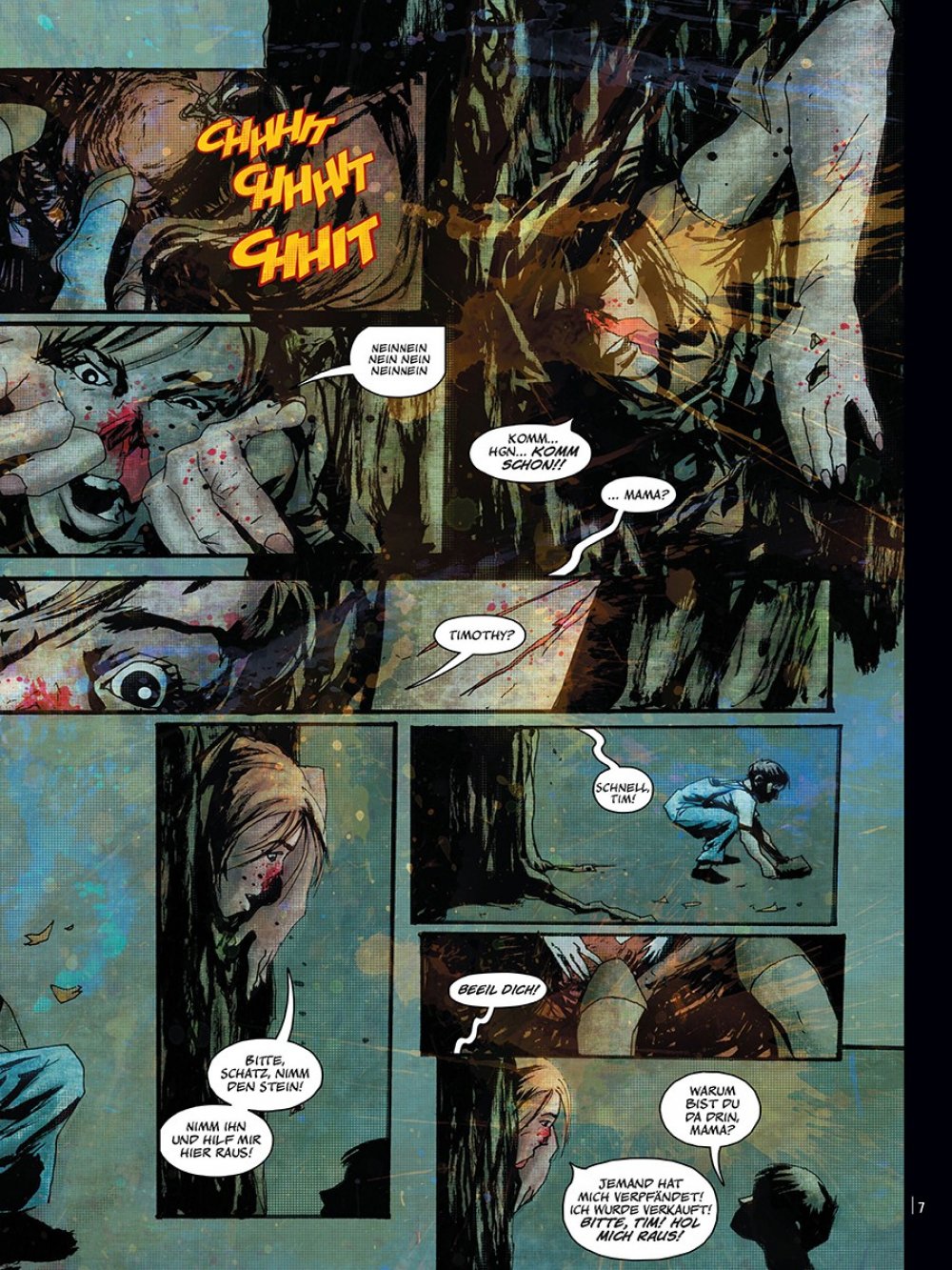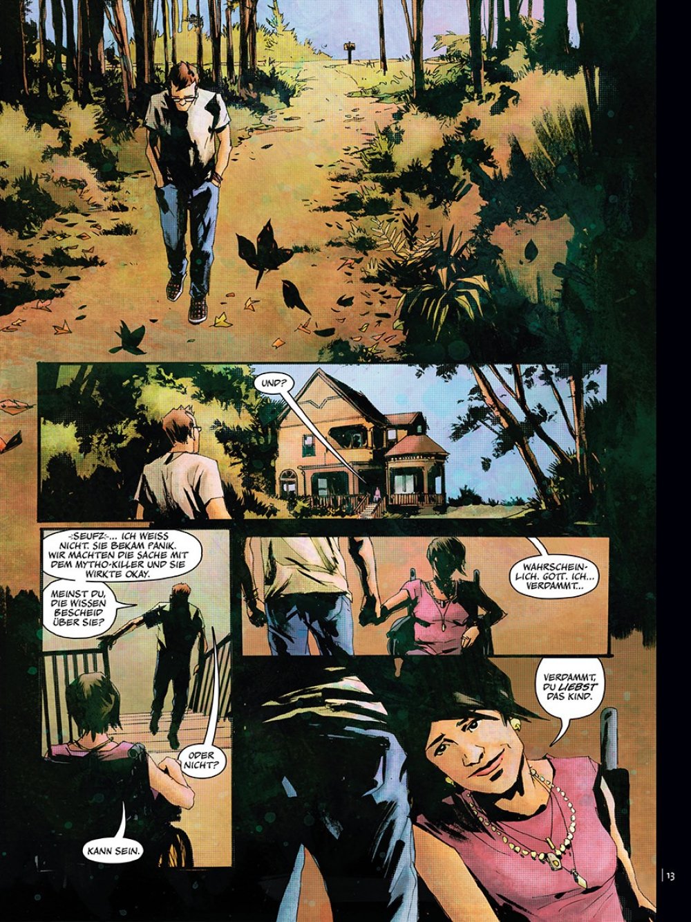In Scott Snyders (u. a. »American Vampire«, »Batman«, »The Wake«) jüngstem Horror-Epos geht es nicht bloß ums Gruseln an sich, das Grauen reicht viel tiefer. Eine Geschichte von den Ängsten, Schuldgefühlen und Depressionen Heranwachsender, aber auch ihrer Eltern. Von Verzweiflung und der Entschlossenheit, gegen die aufkommende Panik anzukämpfen. Jock a. k. a. Mark Simpson (u. a. »Batman«, »The Losers«; Zeichnungen) und Matt Hollingsworth (»Preacher«, »Hawkeye« etc.; Farben) sorgen für eine entsprechend beklemmende, verstörende Atmosphäre – eine Story, die definitiv unter die Haut geht.