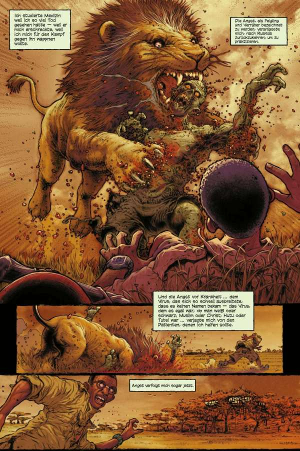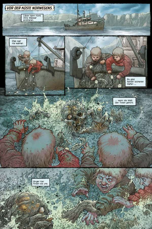 Diesmal wirft Autor Benjamin Percy (WOLVERINE, X-FORCE) zusammen mit Zeichner Juan Jose Ryp (BRITANNIA) und Kolorist Frank Martin (INFINITY WARS) einen weiteren globalen Blick auf die Zombie-Apokalypse.