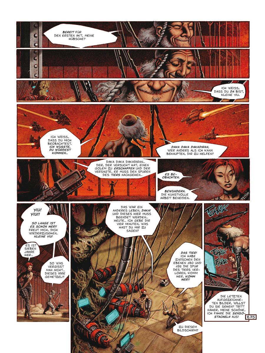Das Szenario von Téhy (Fee) und J.M. Vee wird von Shooting-Star Guenet in gigantischen, explosiven Tableaus umgesetzt, die einem Kino-Blockbuster in nichts nachstehen.