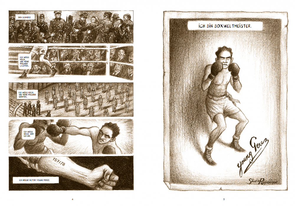 Geboren 1911 in Tunis, lernte Victor «Young» Perez schon in jungen Jahren das Boxen. Beim Sportverein Makkabi verfeinerte er seine Technik und startete mit seinen ersten Kämpfen. 1931, im Alter von nur 20 Jahren, reihte er sich bereits in die großen Legenden des Boxsportes ein, als er als jüngster Boxer den Weltmeistertitel im Fliegengewicht errang. Nach diesem Sieg genoss er Ruhm, Reichtum und die Liebe im Paris der 1930er-Jahre, bevor seine Karriere als Boxprofi durch den Einmarsch der Deutschen abrupt endete. Er tauchte unter, wurde jedoch 1943 verraten, verhaftet und nach Auschwitz deportiert. Dort zwang man ihn wieder in den Ring zu steigen, um wie ein Gladiator zur Unterhaltung der Lager-SS gegen andere Häftlinge um sein Überleben zu kämpfen.