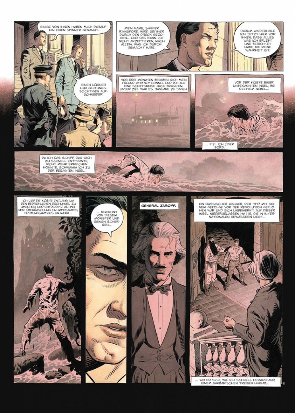 »Mein Name ist Fiona Flanagan. Sie kennen mich nicht, General Zaroff… und doch haben Sie mein Leben für immer verändert, als Sie meinen Vater bei einer Ihrer Menschenjagden töteten. Ich möchte mich dafür gerne revanchieren! Meine Männer haben Ihre Schwester und deren drei Kinder gefunden. Außerdem die Insel, die Ihnen als Unterschlupf dient… und in mir ist das Jagdfieber erwacht! Wer von uns wird Ihre Schwester wohl zuerst finden? Wenn Sie diese Zeilen lesen, befindet sie sich bereits auf der Insel. Wenn ich sie fange, werde ich sie töten. Wenn Sie sie finden, müssen Sie sie verteidigen. Meine Jagd wird erst beendet sein, wenn es keinen Zaroff mehr auf dieser Welt gibt.«