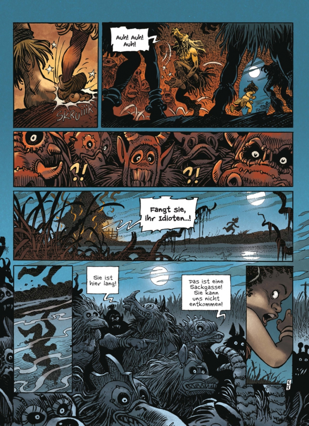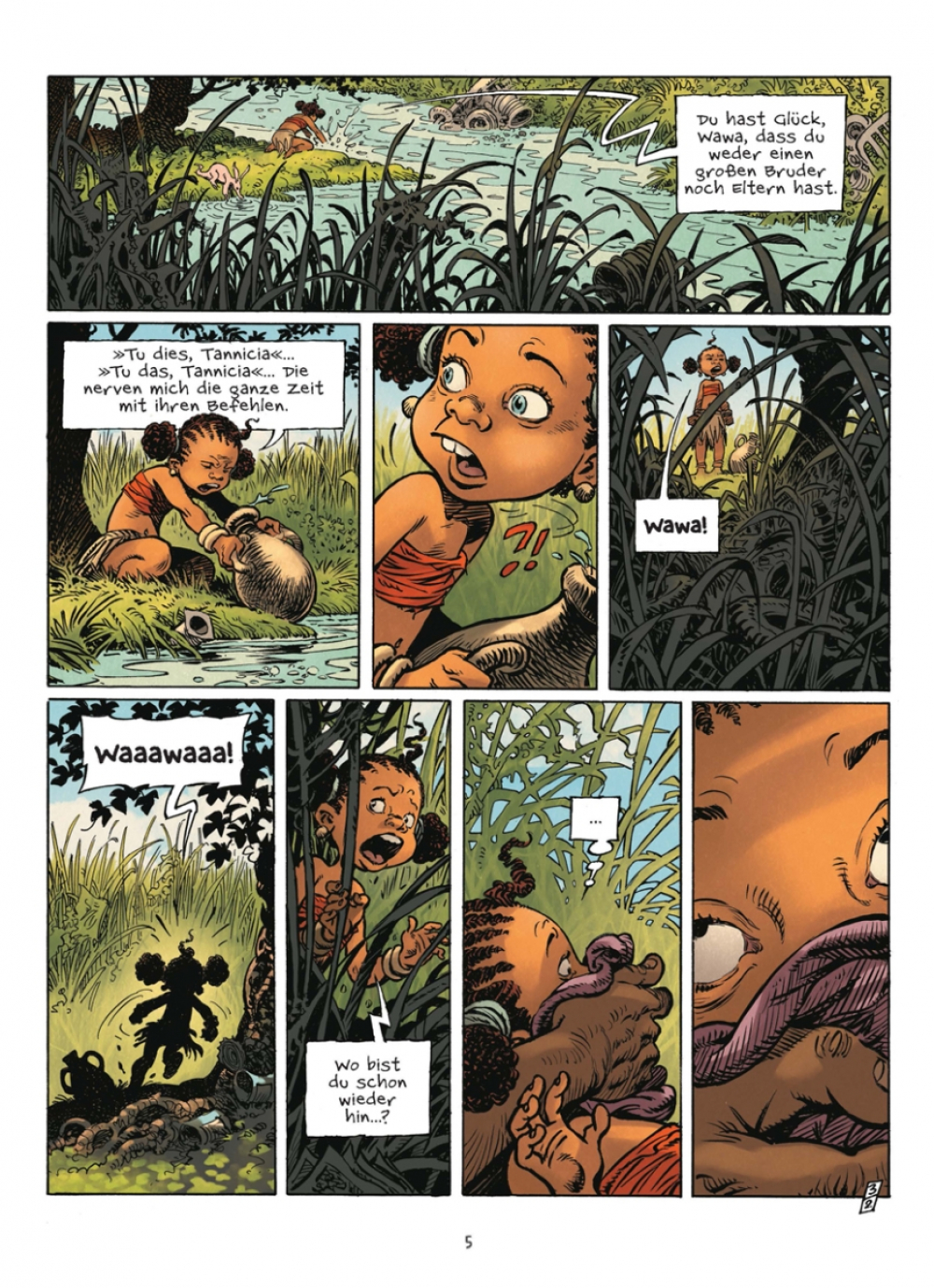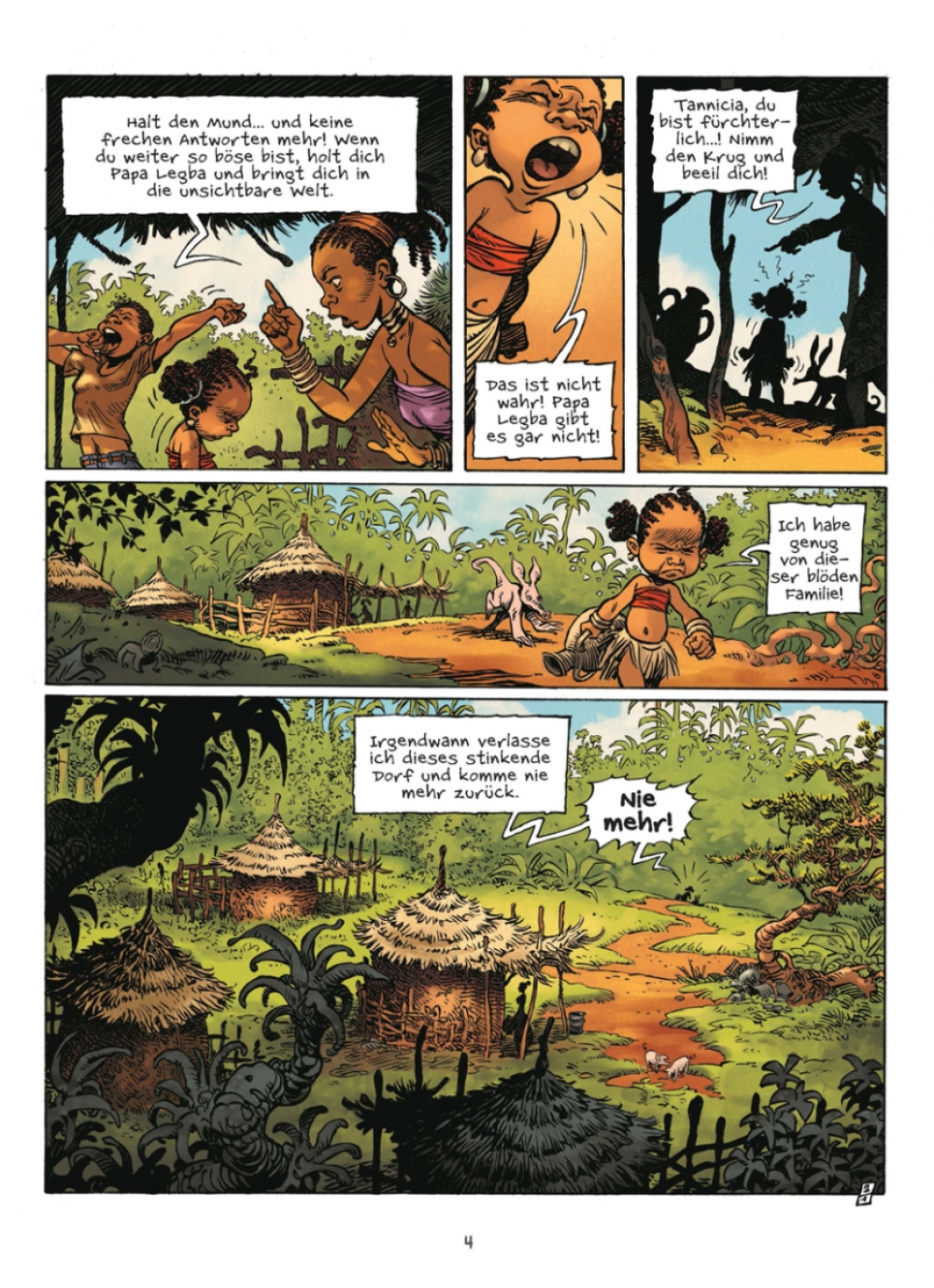 Mit 8 Jahren weiß Tannicia eine Sache ganz bestimmt: Sie will so schnell wie möglich von zu Hause weg, denn ihr Bruder schummelt immer beim Spielen und ihre Mama lässt sie immer nur Wasser holen, „weil das Frauenarbeit ist“. So ein Blödsinn! Aber als ein finsterer Hexenmeister sie gefangen nimmt und für ein ebenso finsteres Voodoo-Ritual opfern will, wäre Tannicia nichts lieber als wieder daheim! Zum Glück kann sie fliehen – aber dabei fällt sie in einen Sumpf und ertrinkt fast! Aber nur fast, denn kurz darauf wacht Tannicia in einer fremden Welt wieder auf, die von sprechenden Tieren mit komischen Bräuchen bewohnt wird. Wo auch immer sie jetzt ist, der Weg zurück nach Hause wird lang und tückisch sein…