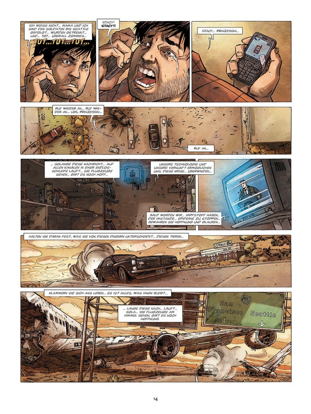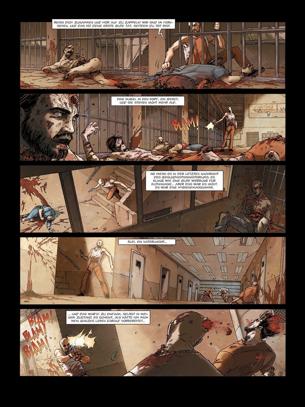 Nicht nur auf der Leinwand, sondern auch im Comic treiben die Zombies ihr überaus vitales Unwesen. Der beste Beweis ist Olivier Perus und Sophian Cholets Bestseller-Serie „Zombies“. Für den großen Erfolg der Splatter-Mär gibt es zwei gute Erklärungen: Cholets meisterhafte Zeichenkunst und Perus geniales Storytelling. Das Künstlerduo macht keine Gefangenen. Zombies wie Menschen gehen blutig zu Werke, und es lässt sich nur schwer entscheiden, von wem eigentlich die größere Gefahr ausgeht. Zwischen den gesellschaftskritischen Meisterwerken des Genres – von George A. Romeros „Night of the Living Dead“ bis zu Danny Boyles „28 Days Later“ – ist „Zombies“ bestens aufgehoben.