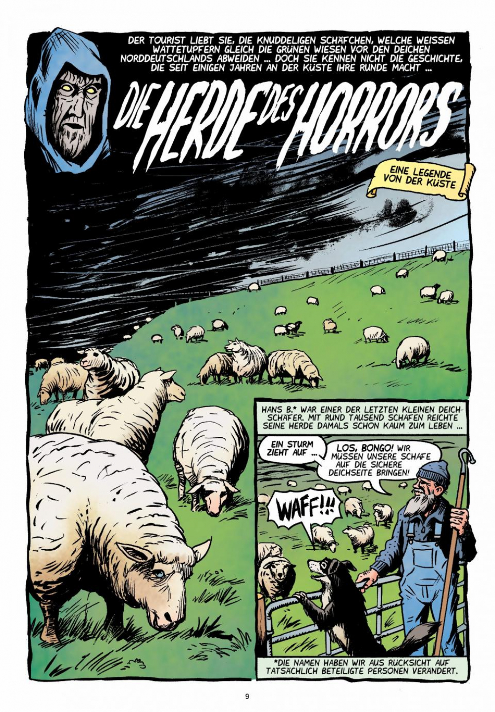 Wo die Nordseewellen schlagen an den Strand ... wo im überspülten Schlick verlorenes Land seine düsteren Geheimnisse hütet ... wo nasse Moore in ihre schlammigen Tiefen locken, wo vergessene Priesterkönige in ihren Hünengräbern von neuen Opfern träumen, wo ein von Wind und Nebel zerfurchter Menschenschlag haust und mitunter eigentümliche Marotten pflegt, dort, in der Tiefebene und zwischen den Meeren, ist der Horror zuhause!