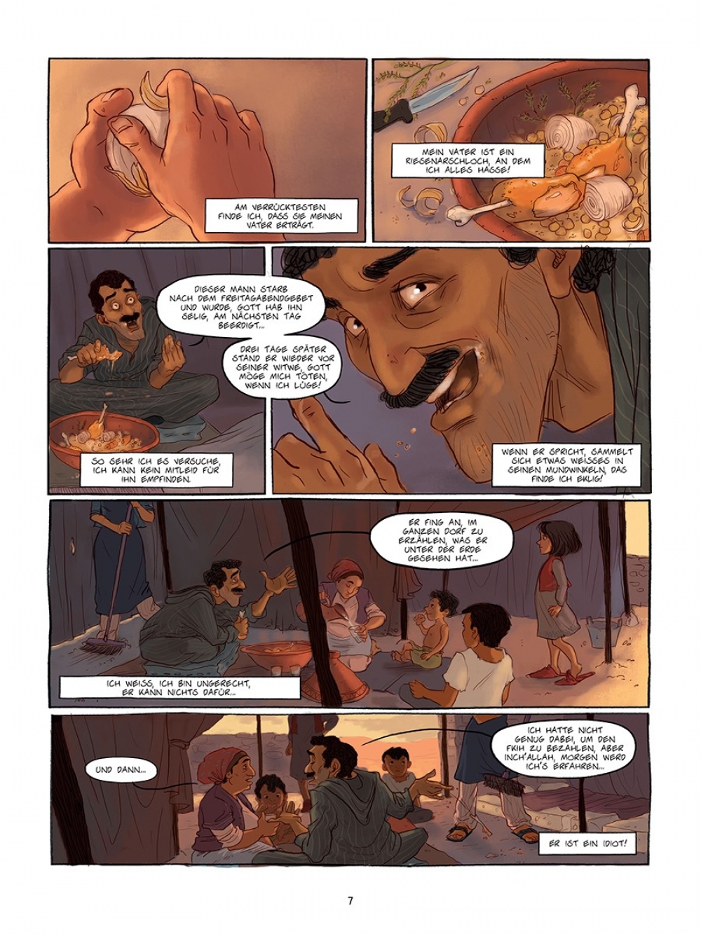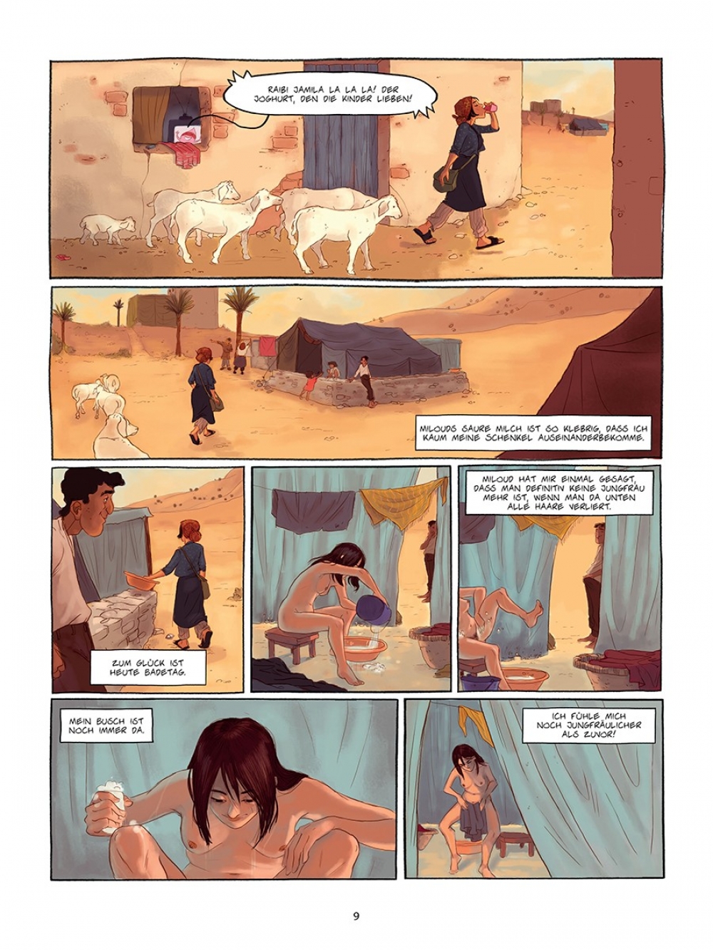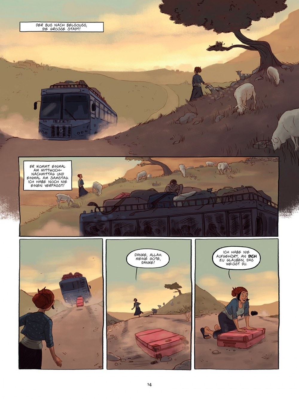 In der Comicadaption von »Zorngebete« bringt nun Eddy Simon Jbara-Kahdijas zornige und zugleich zärtliche Monologe, ihr Auflehnen gegen die verlangte Unterwerfung und ihr Vertrauen in ihren Gott konsequent auf den Punkt, der da heißt: Selbstfindung. Vor allem aber fügt Marie Avril Farbe hinzu, Landschaften, Bilder, die diesen außergewöhnlichen maghrebinischen Bildungsroman auch zu einem einzigartigen sinnlichen Erlebnis werden lassen, weitab von allen islamophoben wie -philen Klischees.