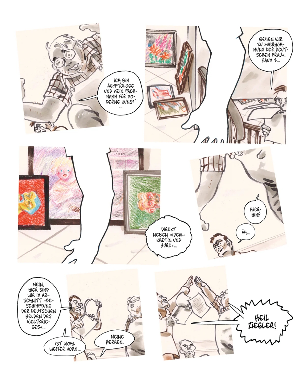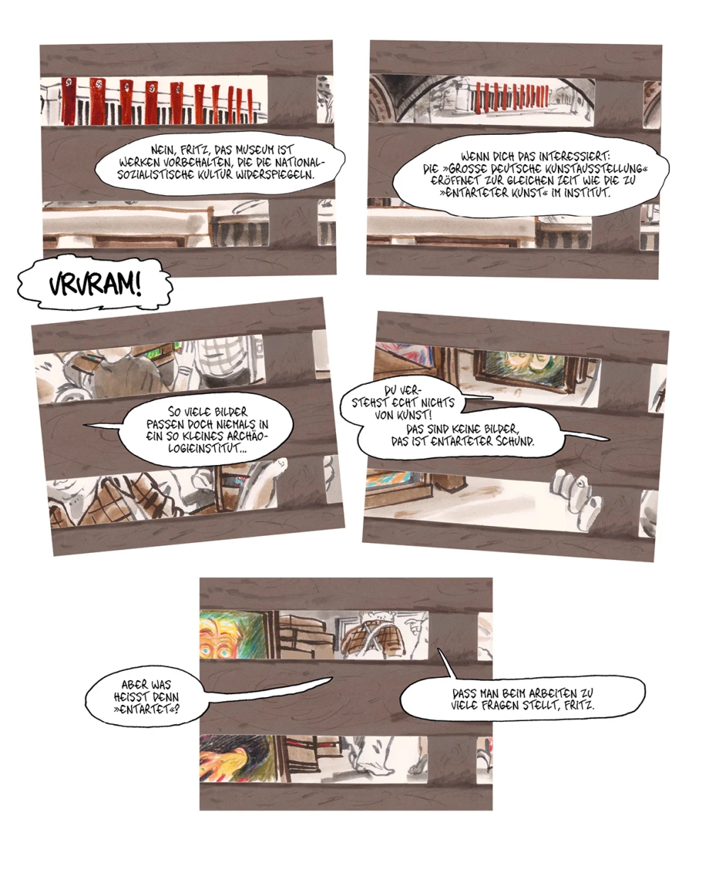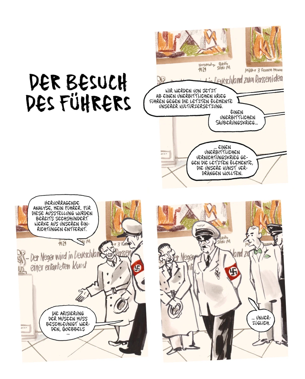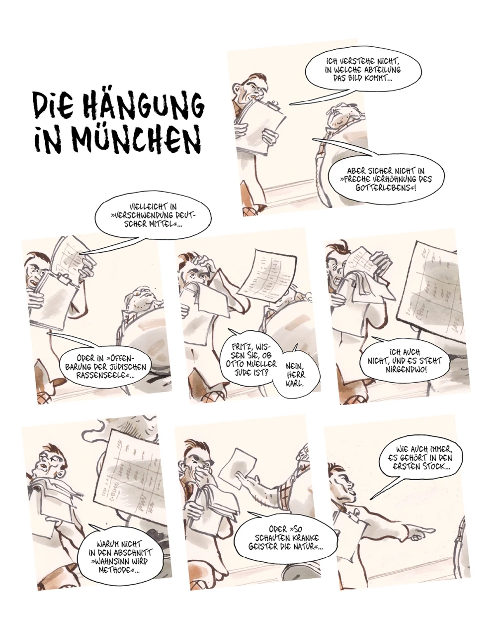 "Ich habe mich viel mit der Münchner Ausstellung 'Entartete Kunst' beschäftigt. Da wurden Kunstwerke buchstäblich zu Feindbildern gemacht. Darin sehe ich eine Parallele zu meinen eigenen Erfahrungen. Deshalb wollte ich die Geschichte eines der Bilder aus dieser Ausstellung erzählen, die unfreiwillig zur beeindruckendsten Zusammenstellung von Malerei des 20. Jahrhunderts geworden ist." – Luz