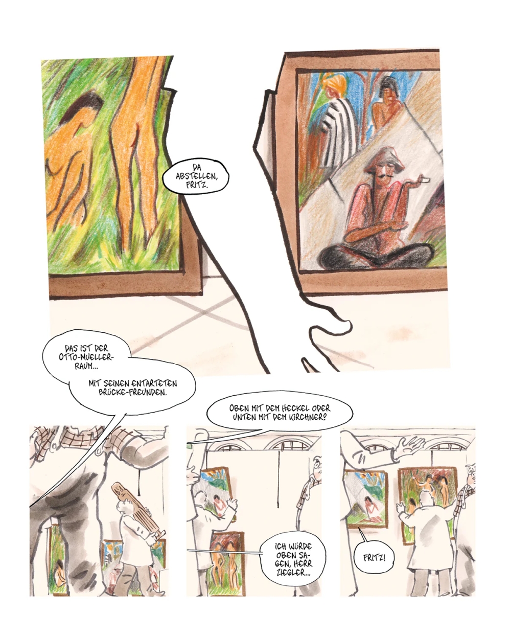 Mit "Zwei weibliche Halbakte" gelingt Luz ("Vernon Subutex") ein außergewöhnlicher Comic: Als Leser:in sieht und hört man einzig, was sich unmittelbar vor Otto Muellers Gemälde abspielt. Und doch entfaltet Luz mit diesem passiven Akteur ein faszinierendes Zeit- und Gesellschaftspanorama und ruft damit auch zur Wachsamkeit gegenüber dem Aufstieg der extremen Rechten und allen Formen der politischen und kulturellen Zensur auf.