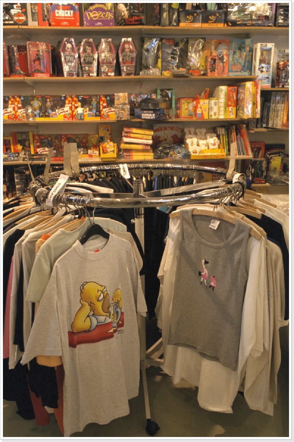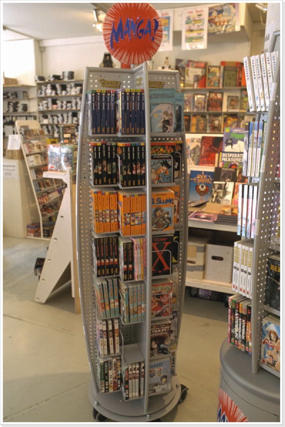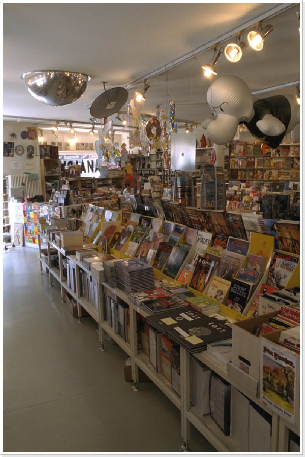 Auf zwei Etagen und über 220m2 Verkaufsfläche bieteten wir ein Riesenangebot an vorwiegend deutschen und amerikanischen Comics. Fast täglich treffen Action-Figuren, T-Shirts, Posters, Trading-Cards und vieles mehr von Kultserien wie Simpsons, Futurama, Dragonball, Yu-Gi-Oh, Spiderman, Batman, Star Wars, Spawn und Herr der Ringe ein. Das Angebot wird ergänzt durch Artbooks (Anime, Manga und Fantasy).