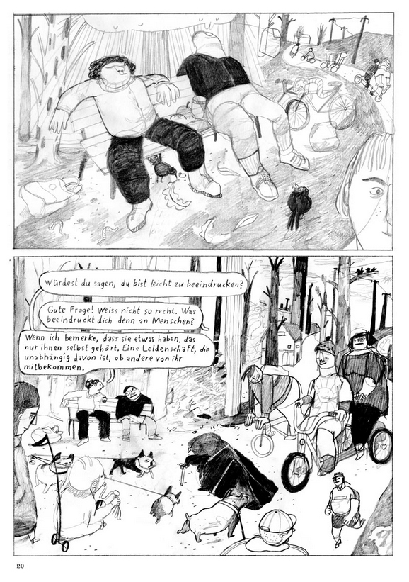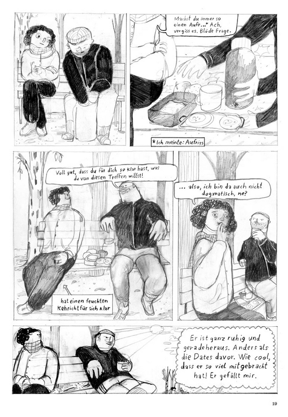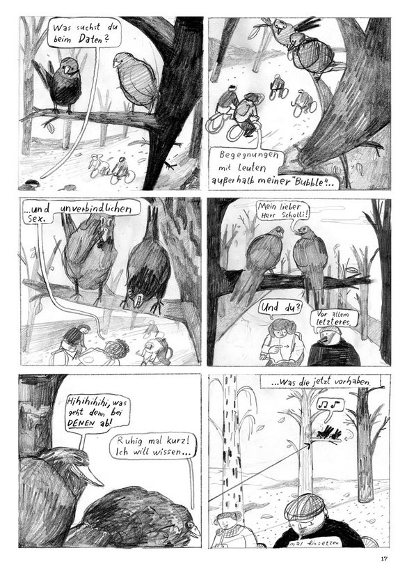 Als die beiden sich treffen, sieht Helena in hellbraune Augen und wird nervös – er gefällt ihr. Momente der Anziehung und Irritation wechseln sich mit Missverständnissen ab. Was beide nicht ahnen: Zwei voyeuristische Amseln haben sich ihnen unbemerkt an die Fersen geheftet und amüsieren sich über das Geschehen. Zum zweiten Treffen kommt Helena mit dem Plan, an diesem Abend nicht mehr die Bahn nach Hause zu nehmen ...